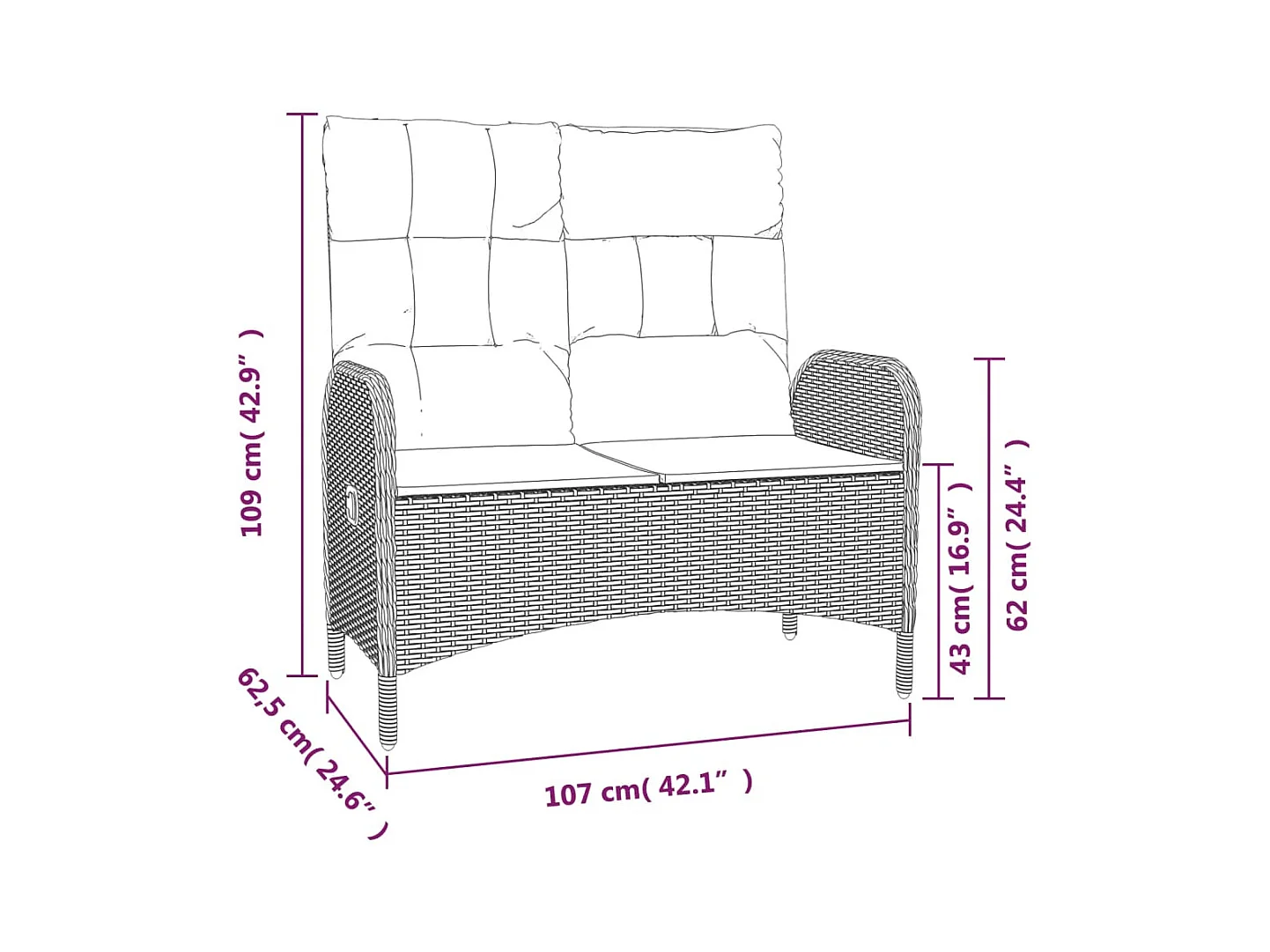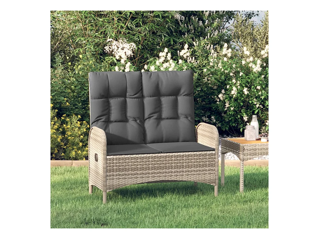 Banc de jardin inclinable avec coussins 107 cm Poly rotin Gris