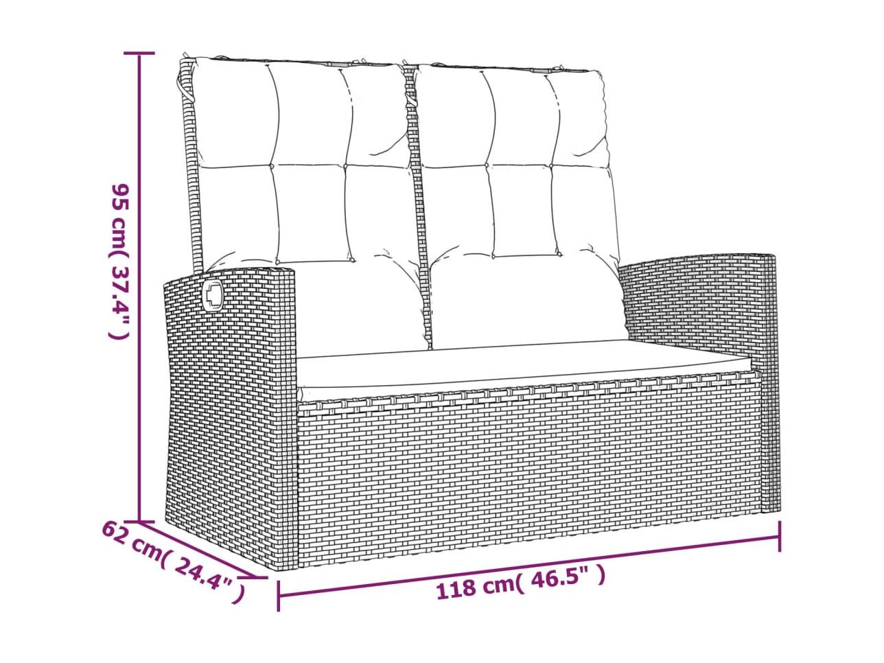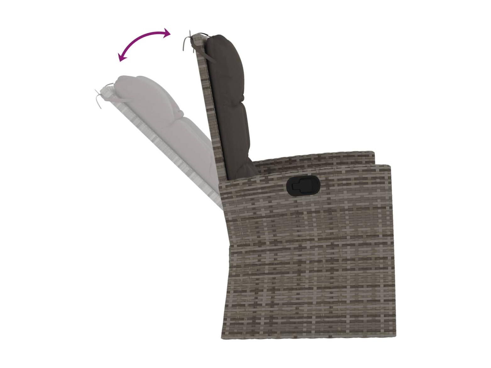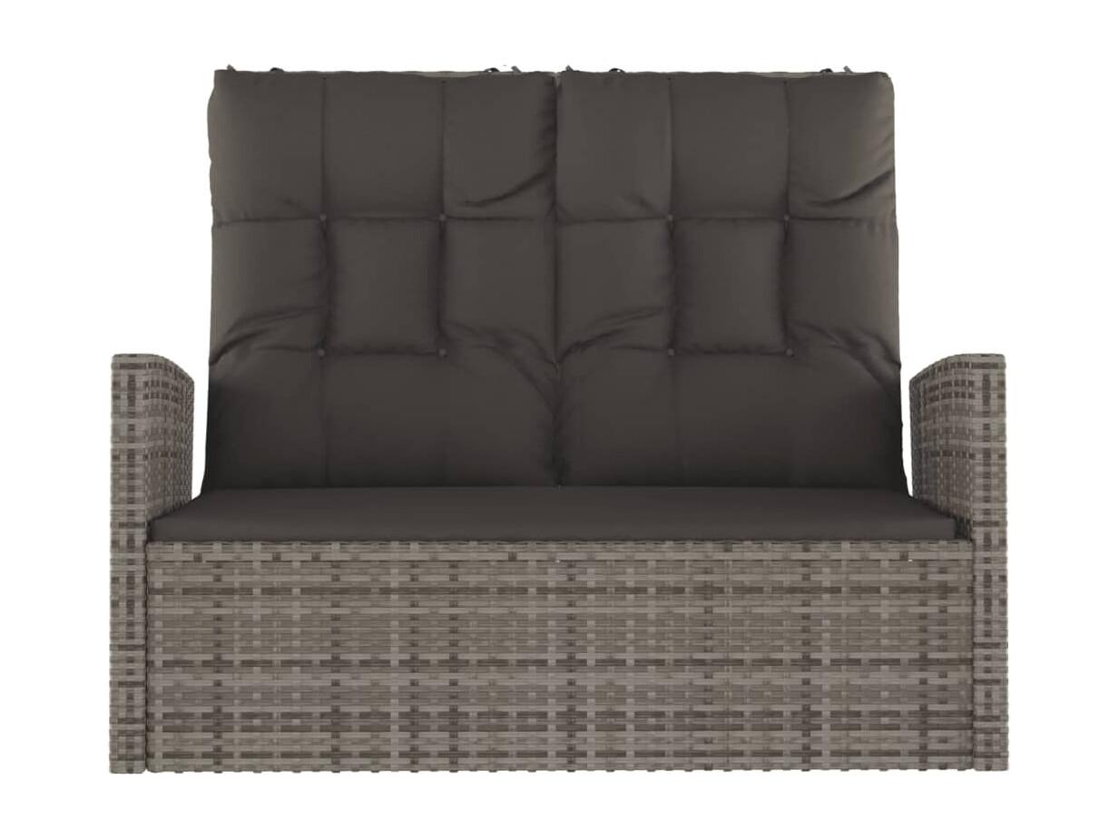 Banc de jardin inclinable et coussins gris 118cm résine tressée