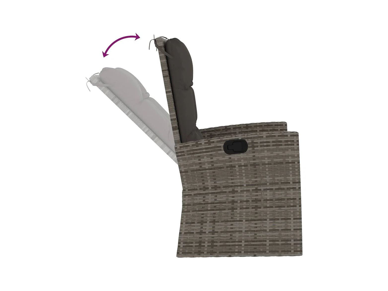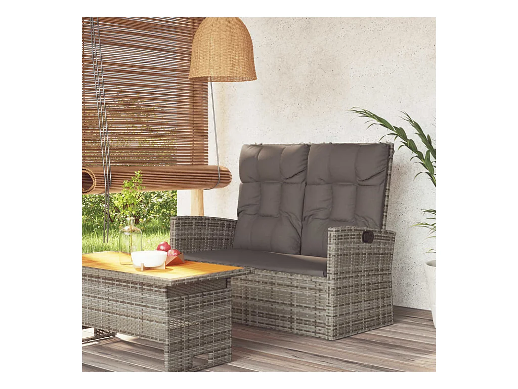 Banc de jardin inclinable avec coussins 107 cm Poly rotin Gris