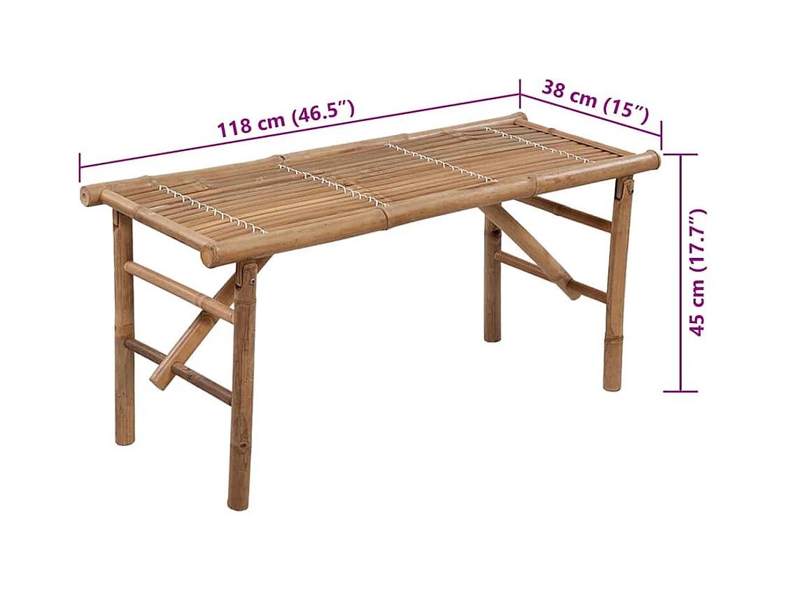 Banc de jardin pliable avec coussin 118 cm Bambou