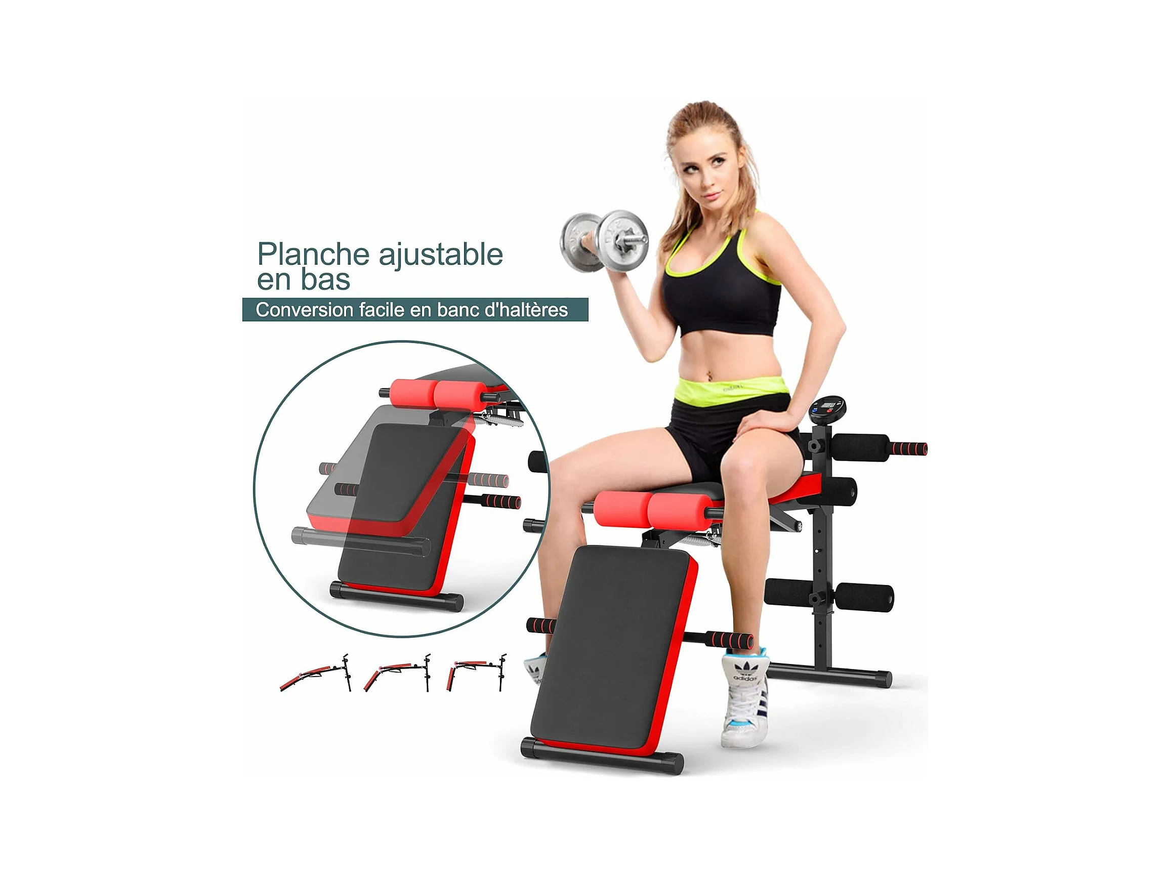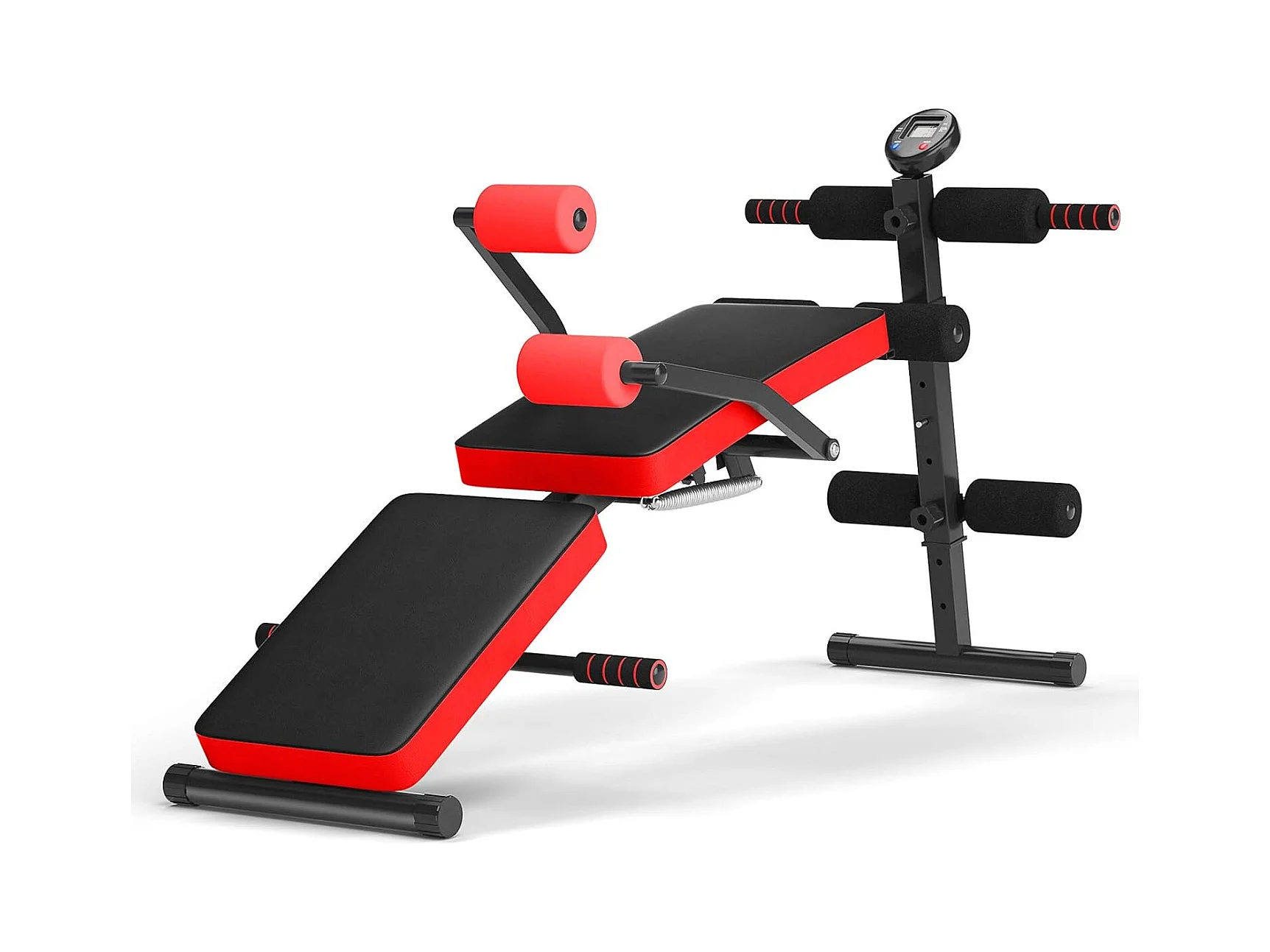 Banc de Musculation Pliable Abdos et Sit-up avec 5 Rouleaux de Mousse Charge 200KG pour Maison,Salle de Sport et Bureau, Rouge