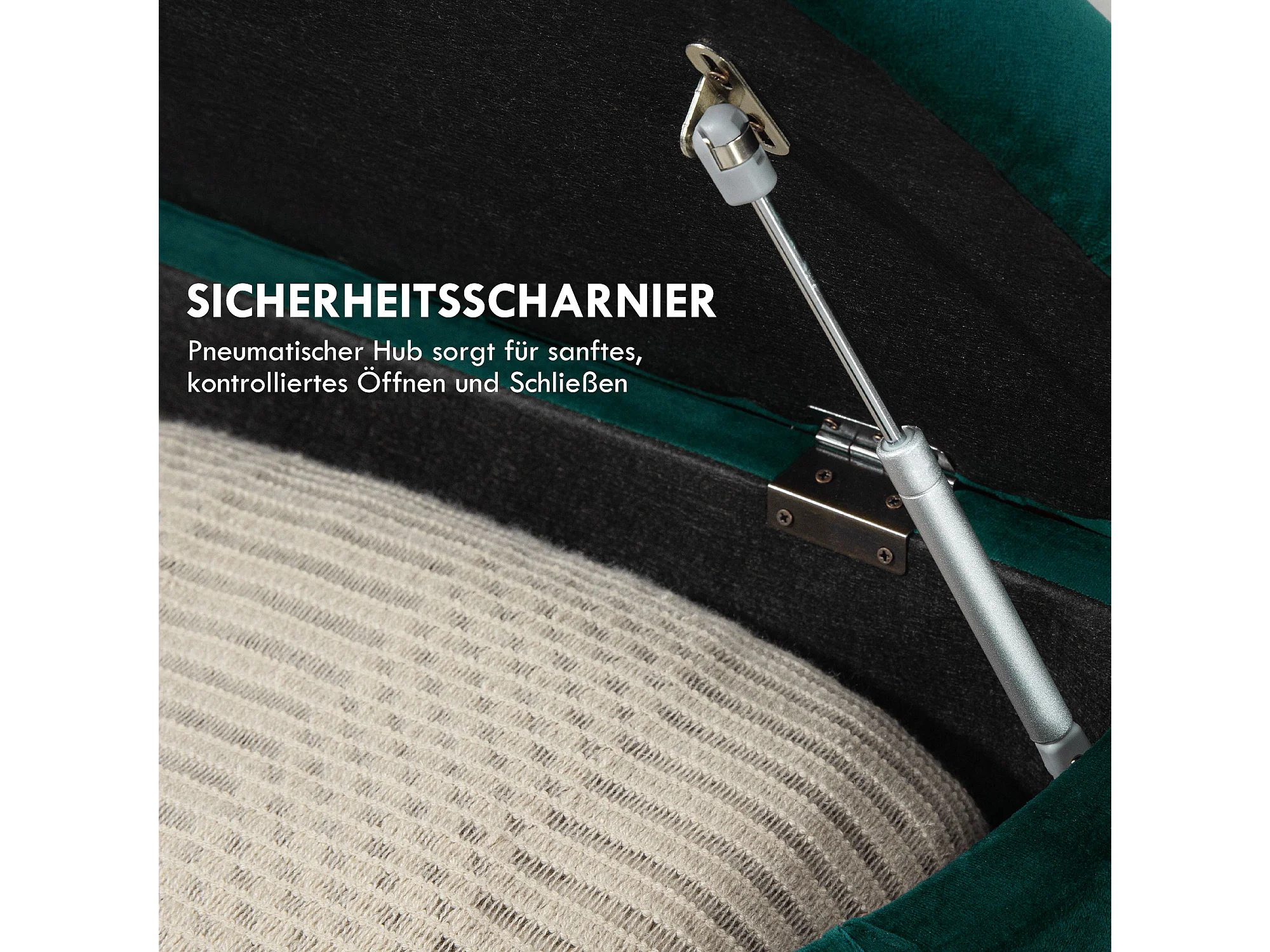 Banc de rangement avec coussin, bois de caoutchouc, tissu Velvet, vert foncé (120x46x42 cm)