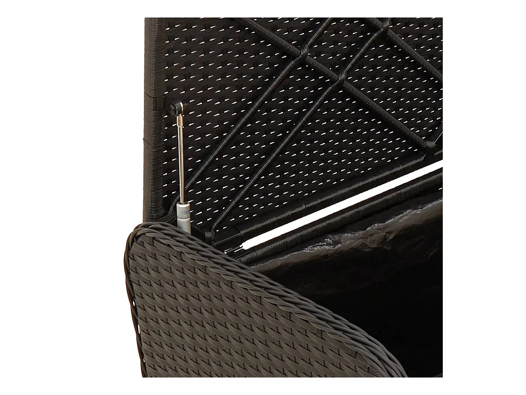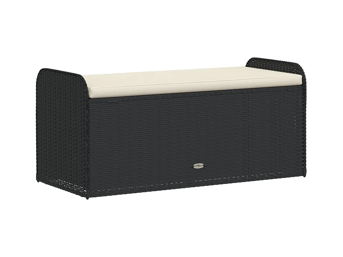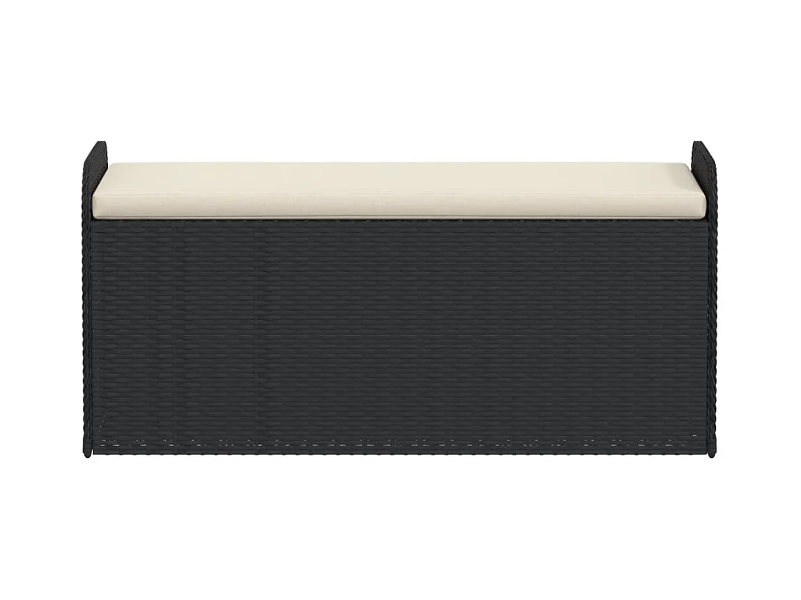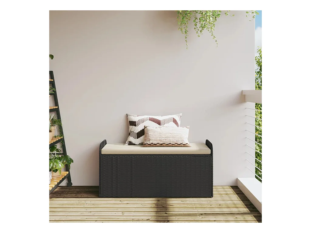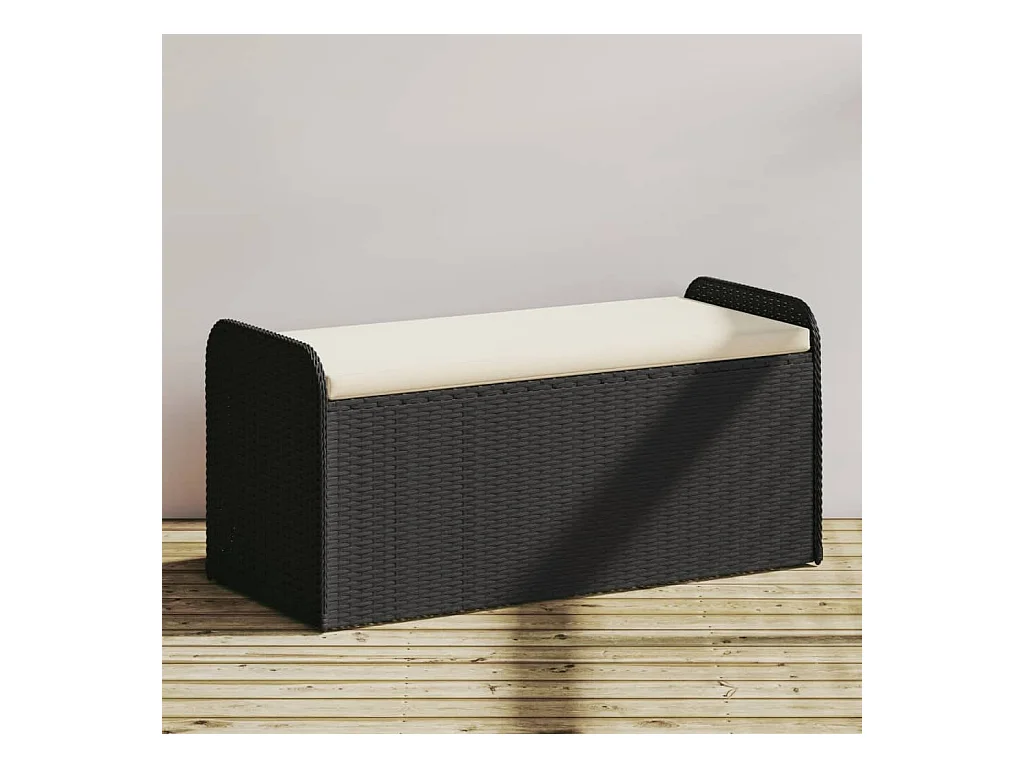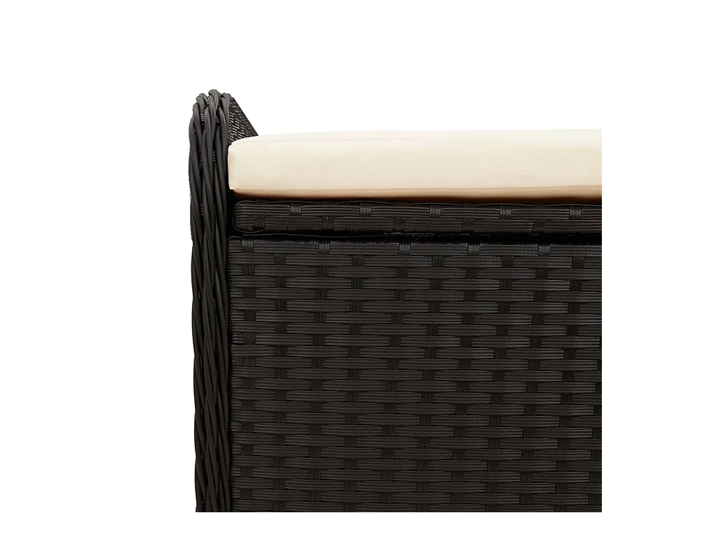 Banc de rangement de jardin avec coussin noir résine tressée
