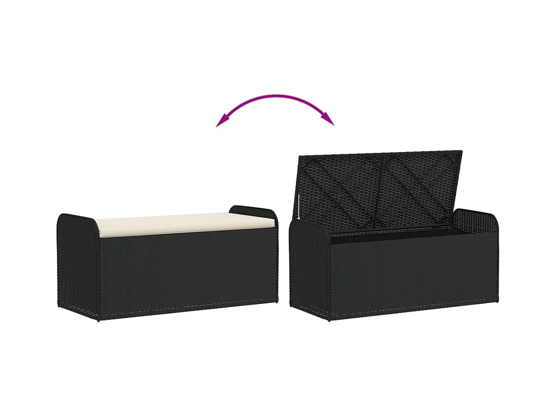 Banc de rangement avec coussin noir 115x51x52 cm résine tressée