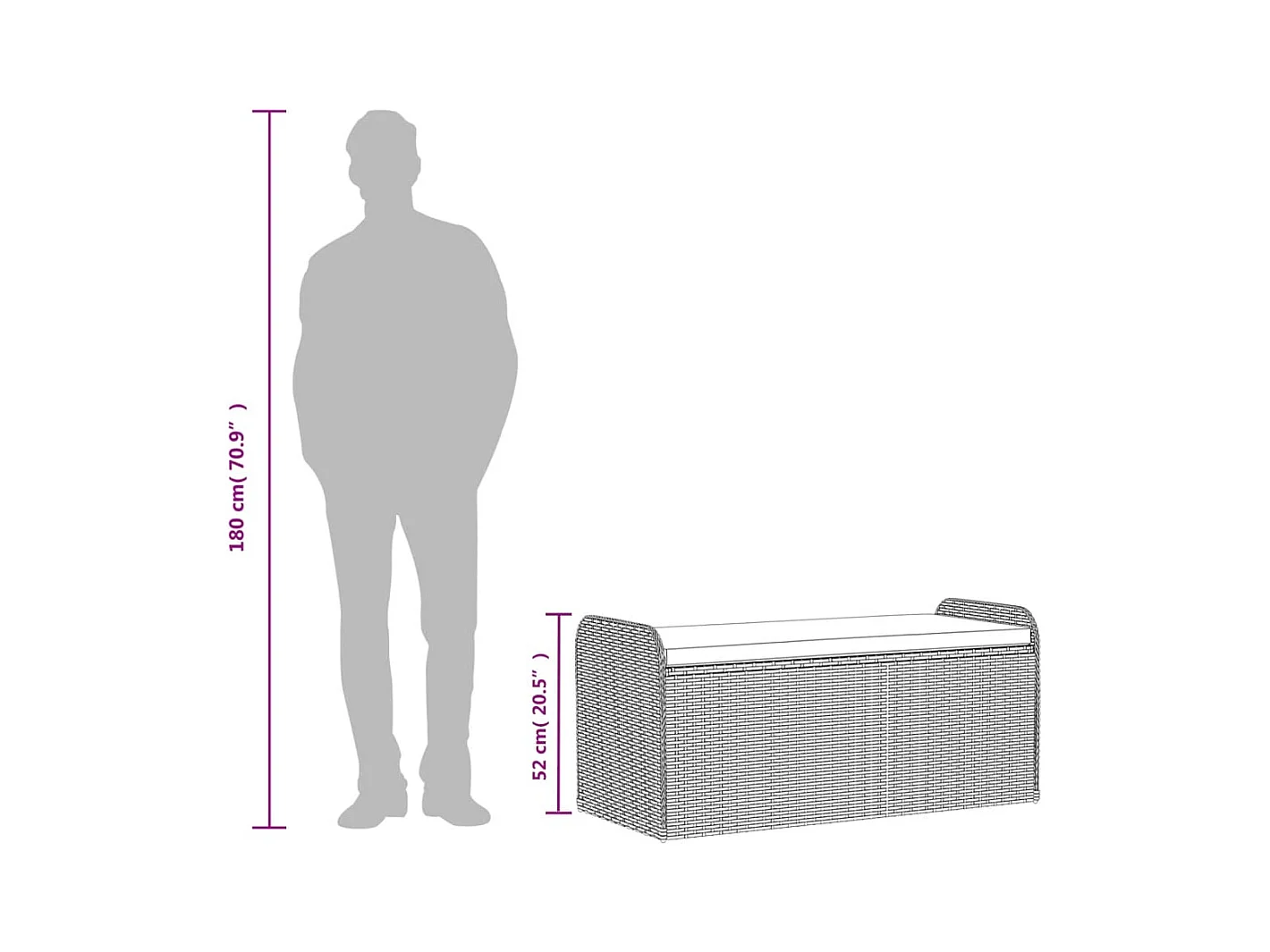 Banc de rangement avec coussin noir 80x51x52 cm résine tressée