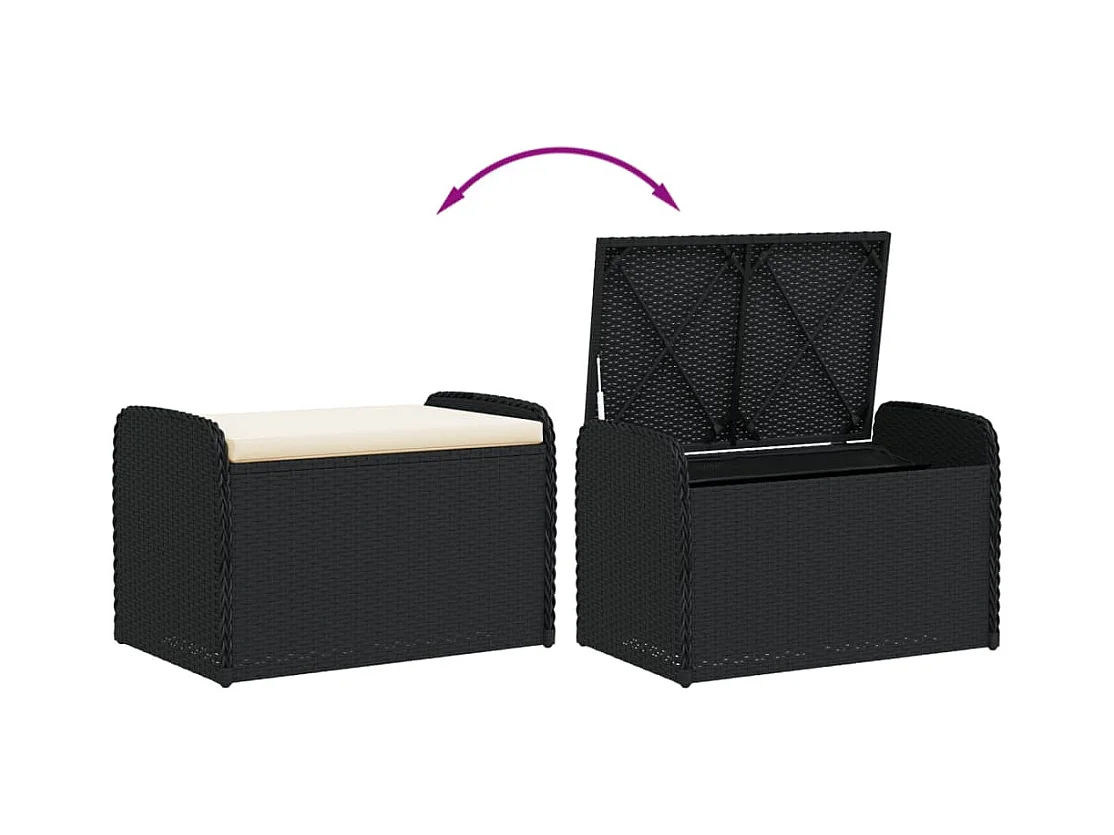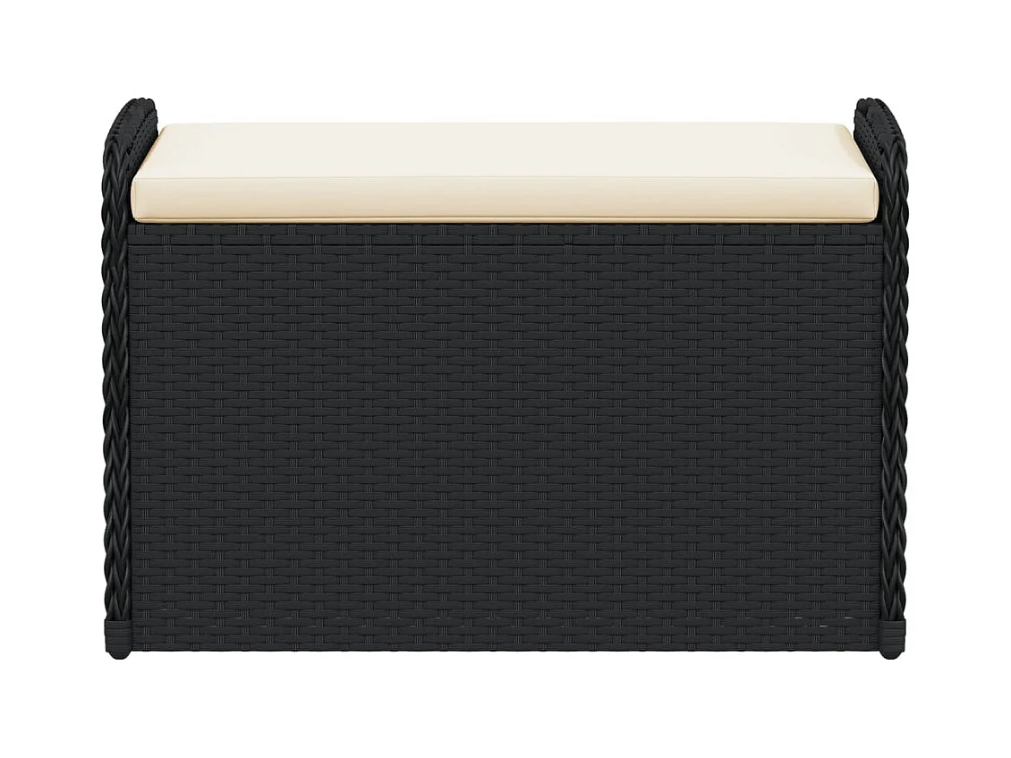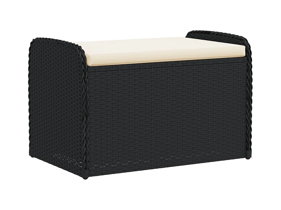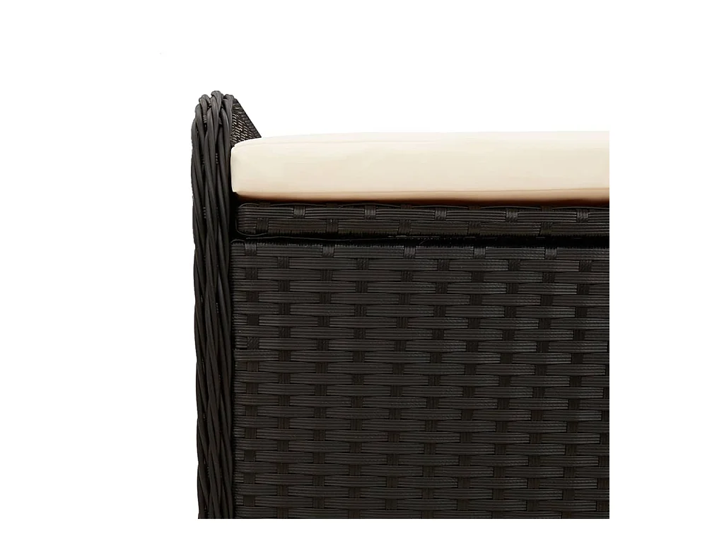 Banc de rangement avec coussin noir 80x51x52 cm résine tressée