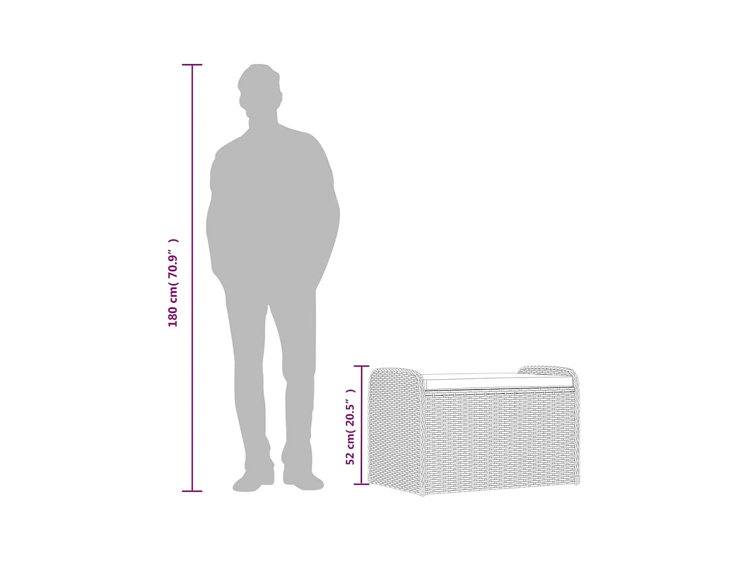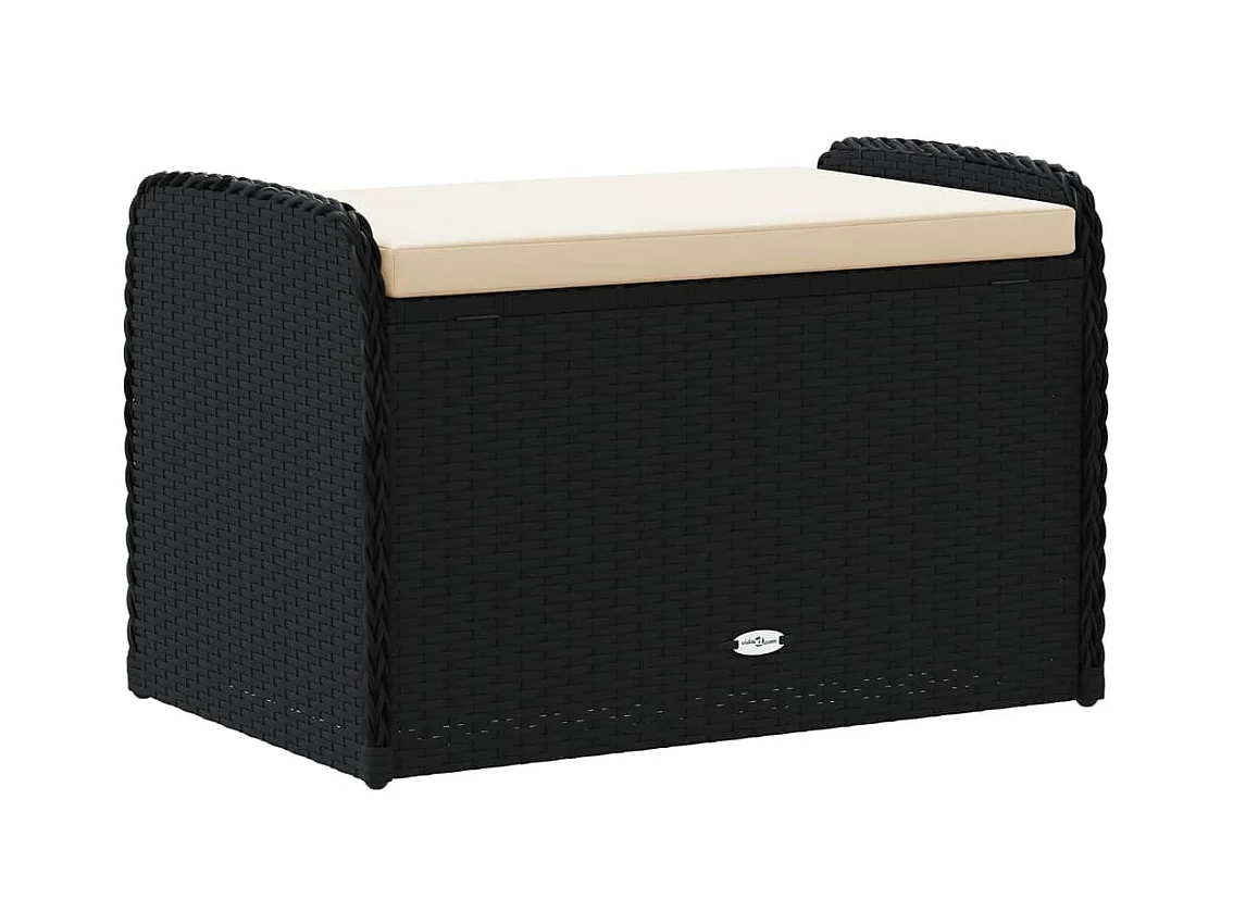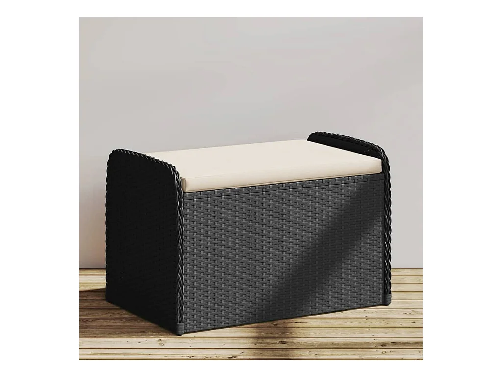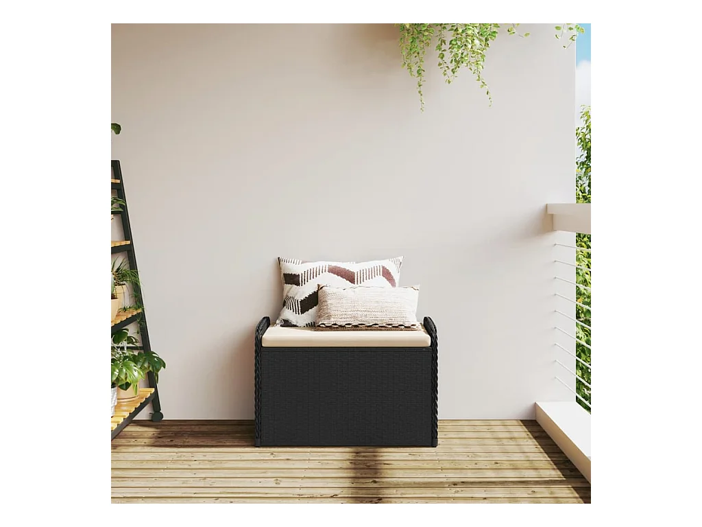 Banc de rangement avec coussin noir 80x51x52 cm résine tressée
