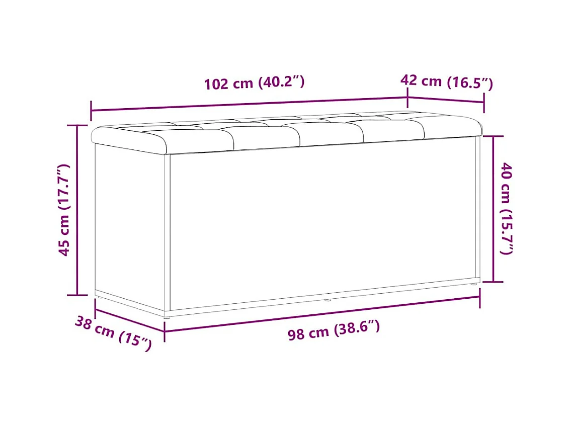 Banc de Rangement Chêne noir 102 x 42 x 45 cm Bois d'ingénierie