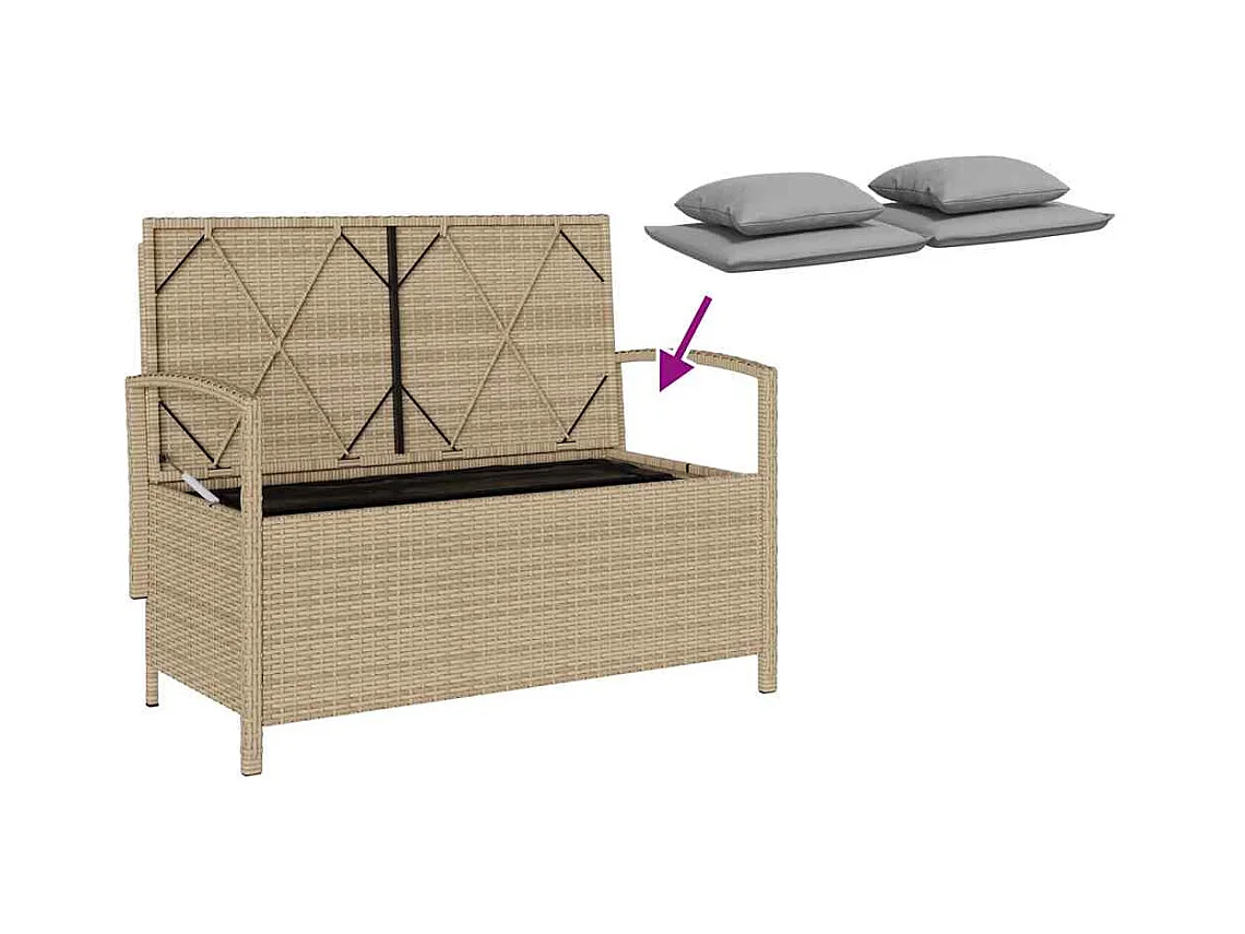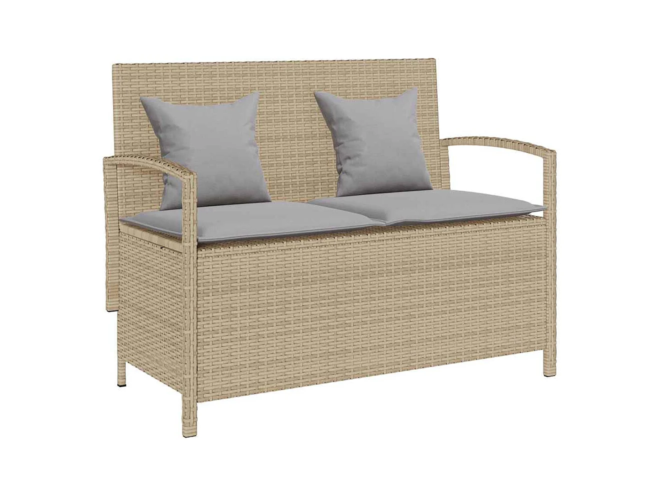 Banc de jardin avec coussin beige 110x40x44 cm résine tressée