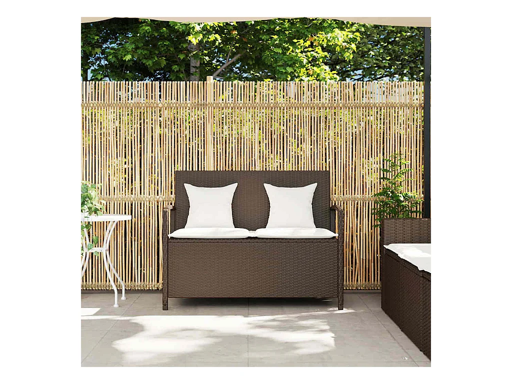 Banc de rangement et coussin marron 115x51x52 cm résine tressée