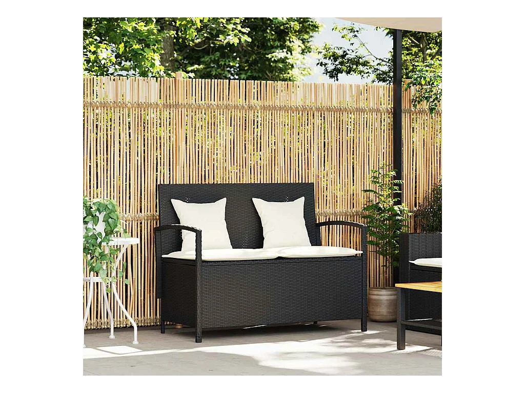 Banc de rangement avec coussin noir 80x51x52 cm résine tressée
