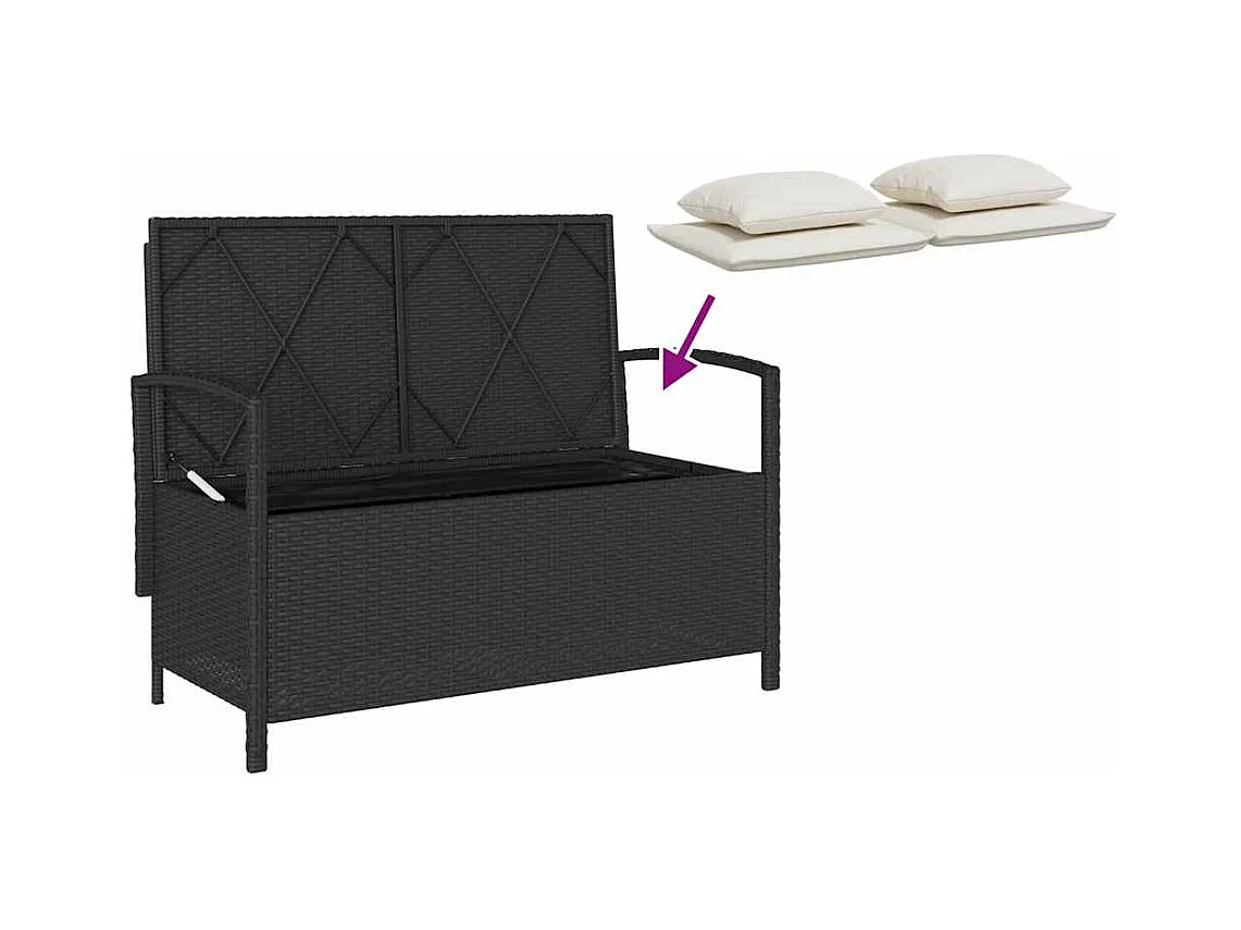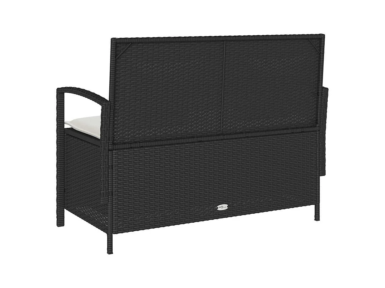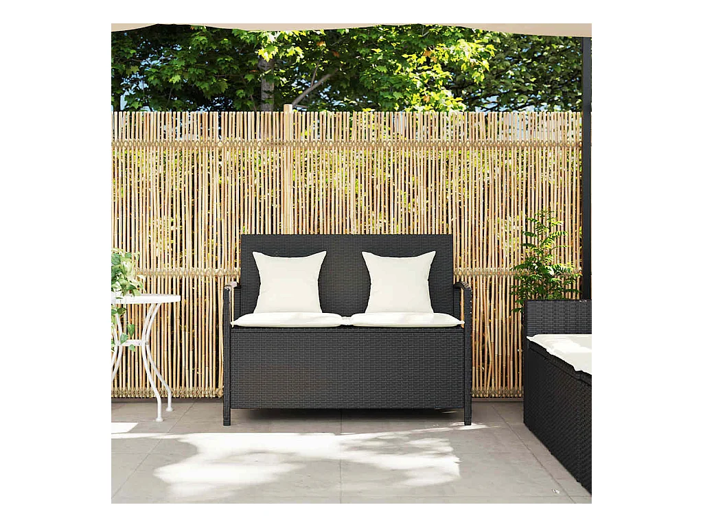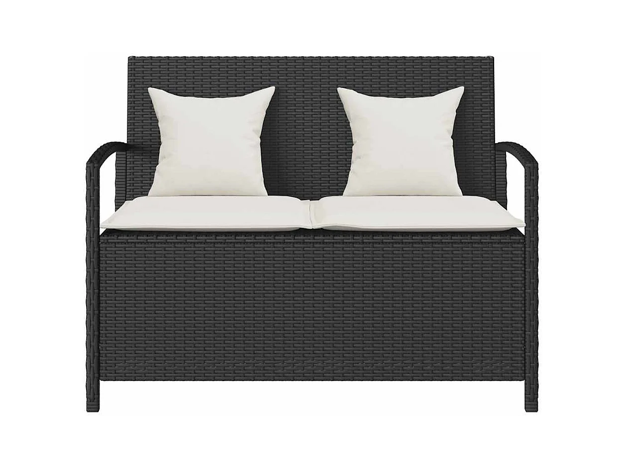 Banc de jardin avec coussin noir 116x46x57 cm résine tressée