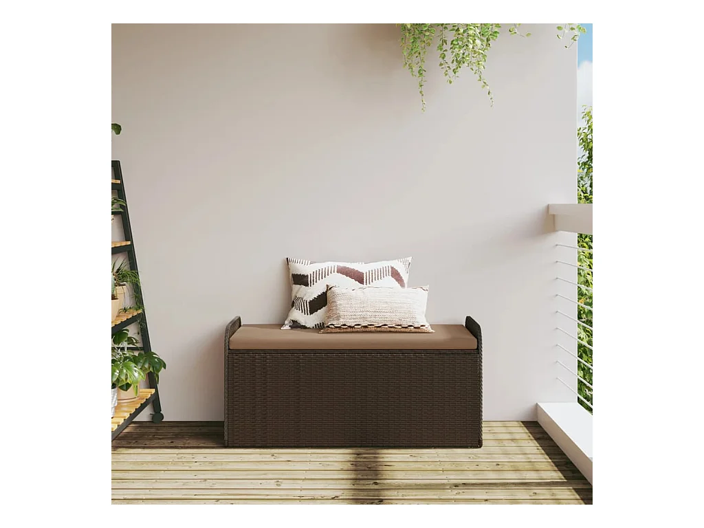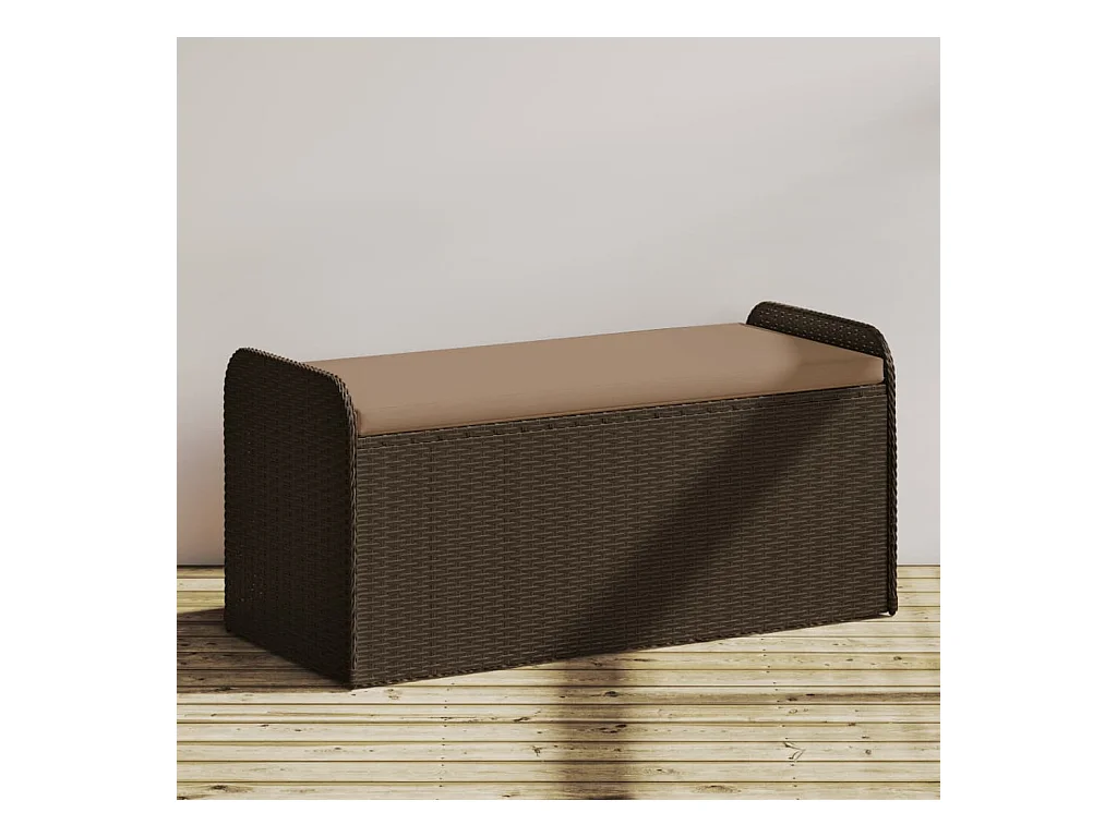 Banc de rangement de jardin avec coussin marron polyrotin