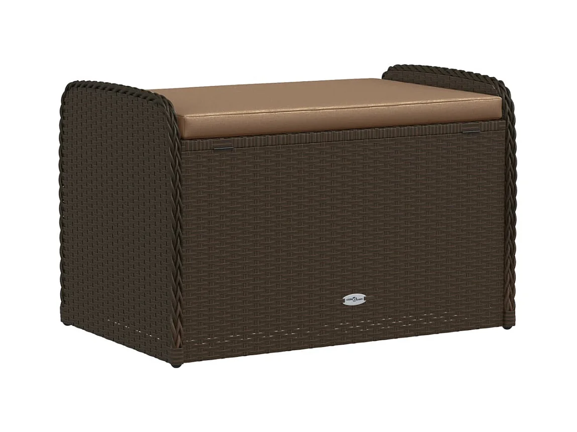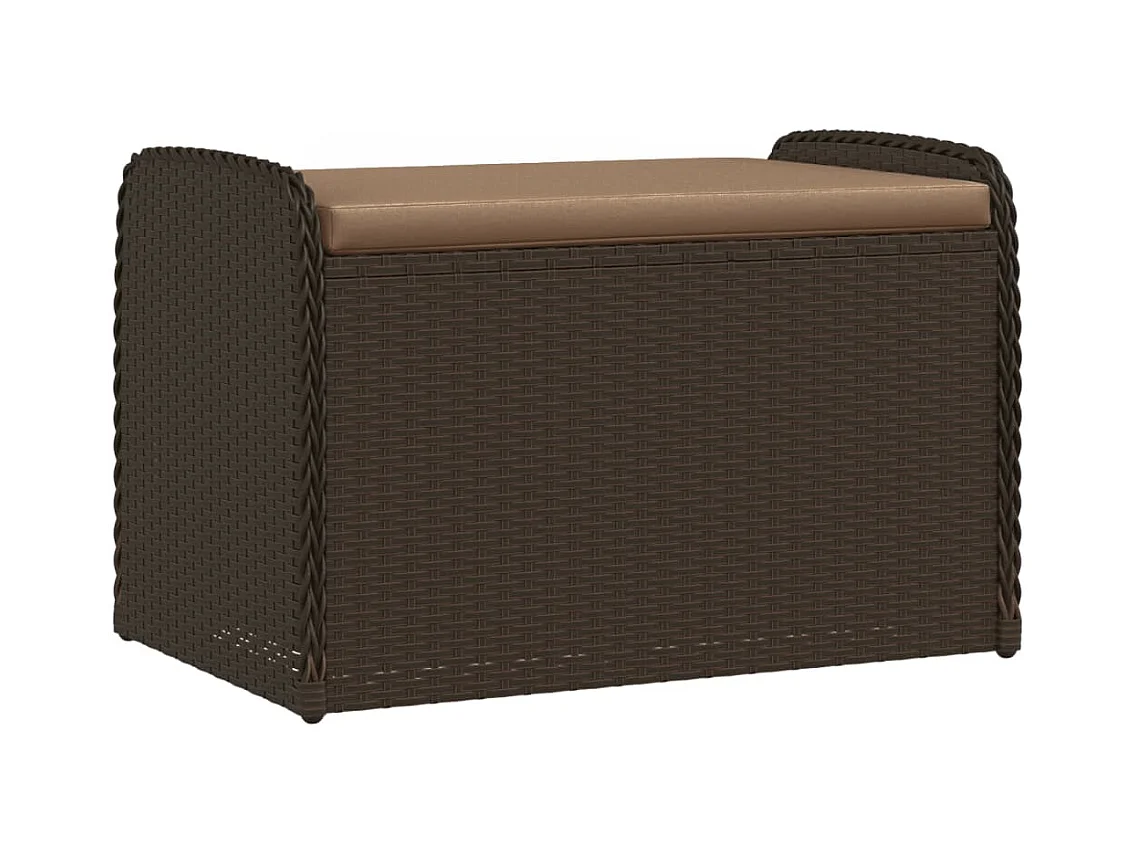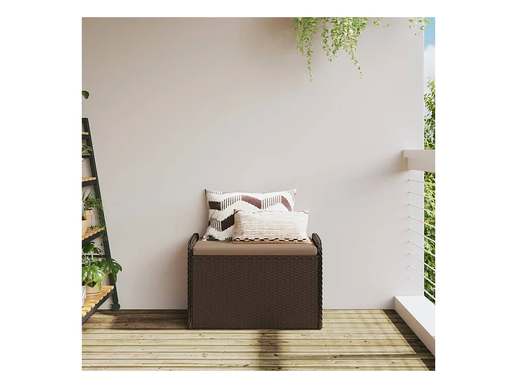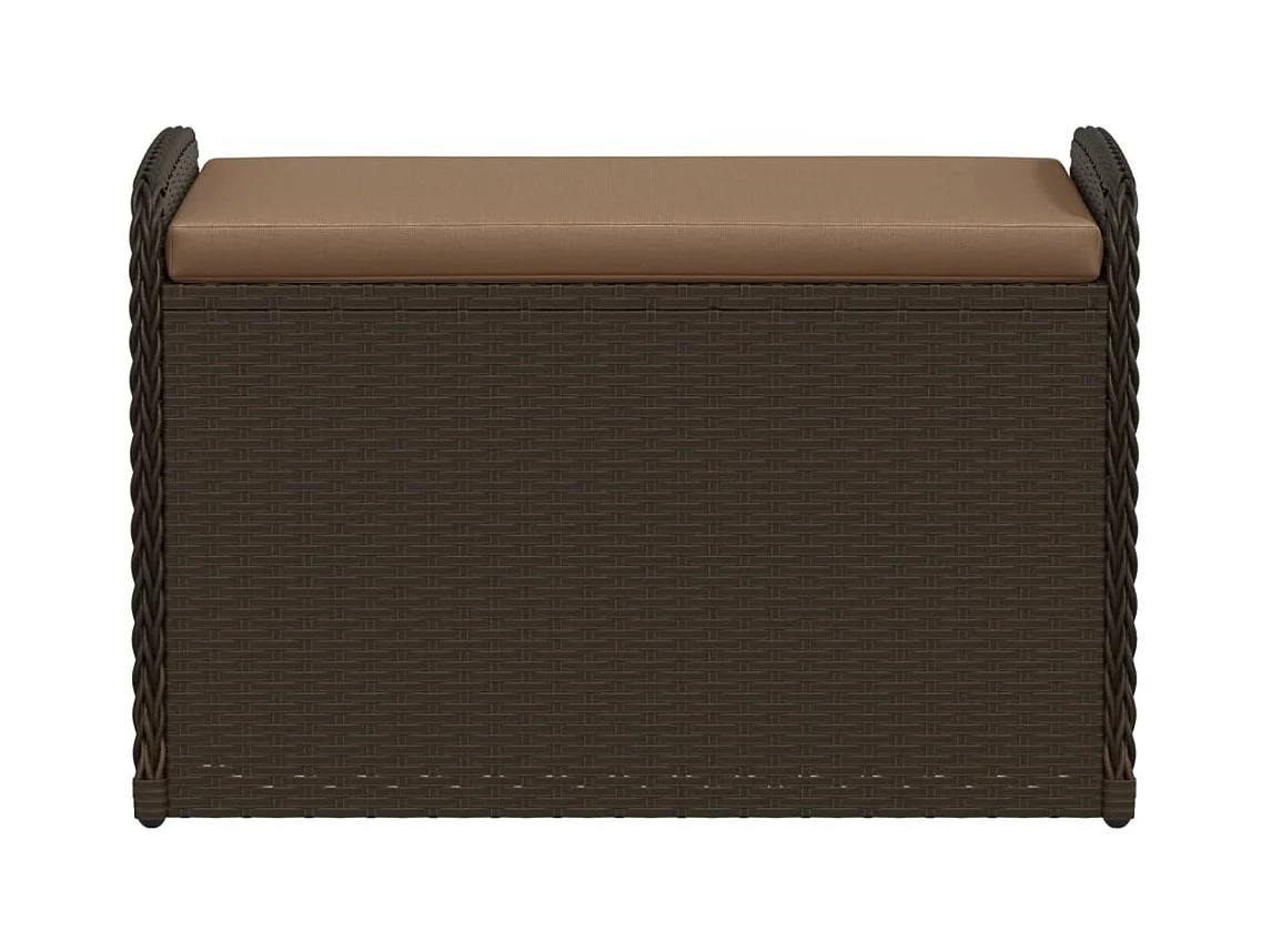 Banc de rangement et coussin marron 80x51x52 cm résine tressée