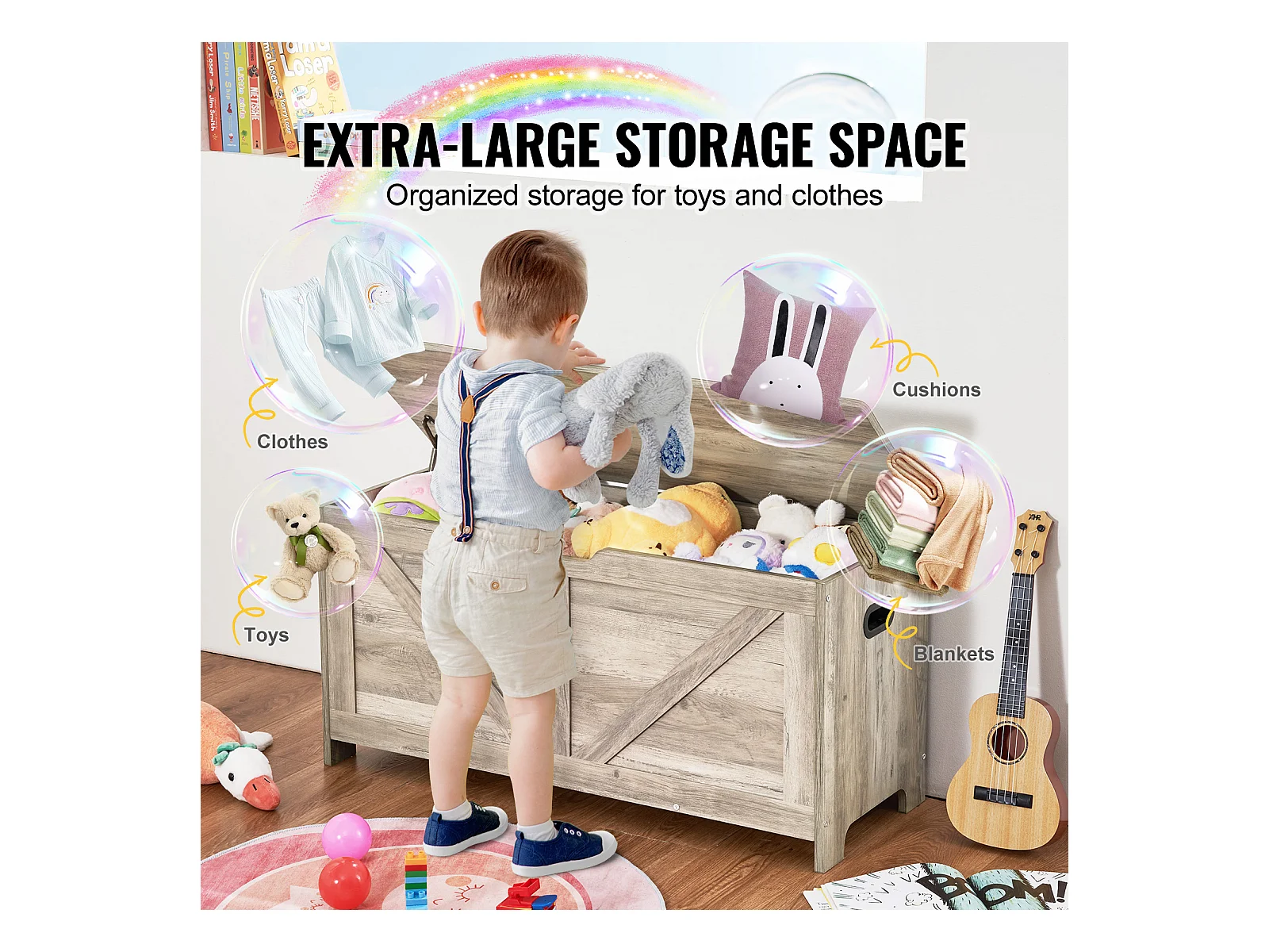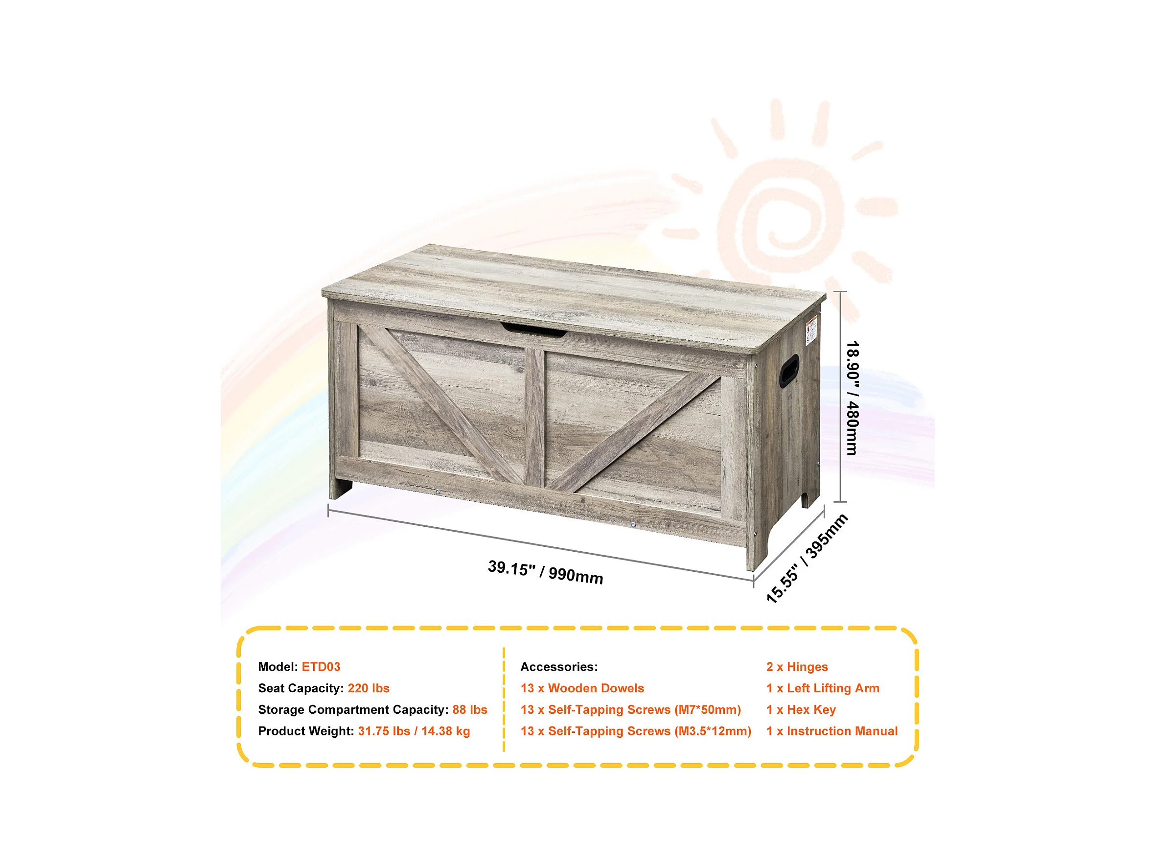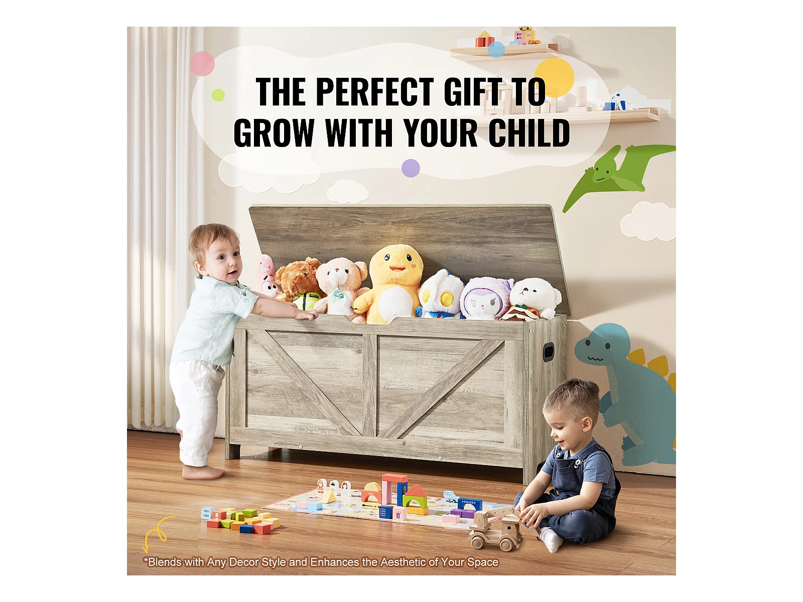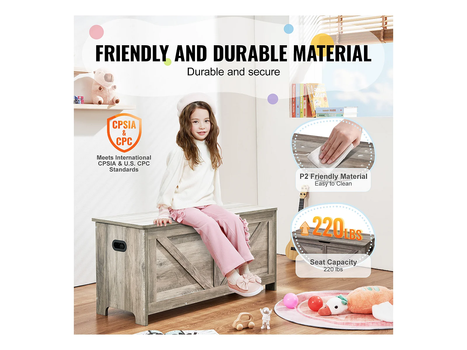 Coffre à jouets en Bois, Banc de Rangement pour Jouets pour Enfants Coffre à Jouets 99x39,5x48 cm Gris