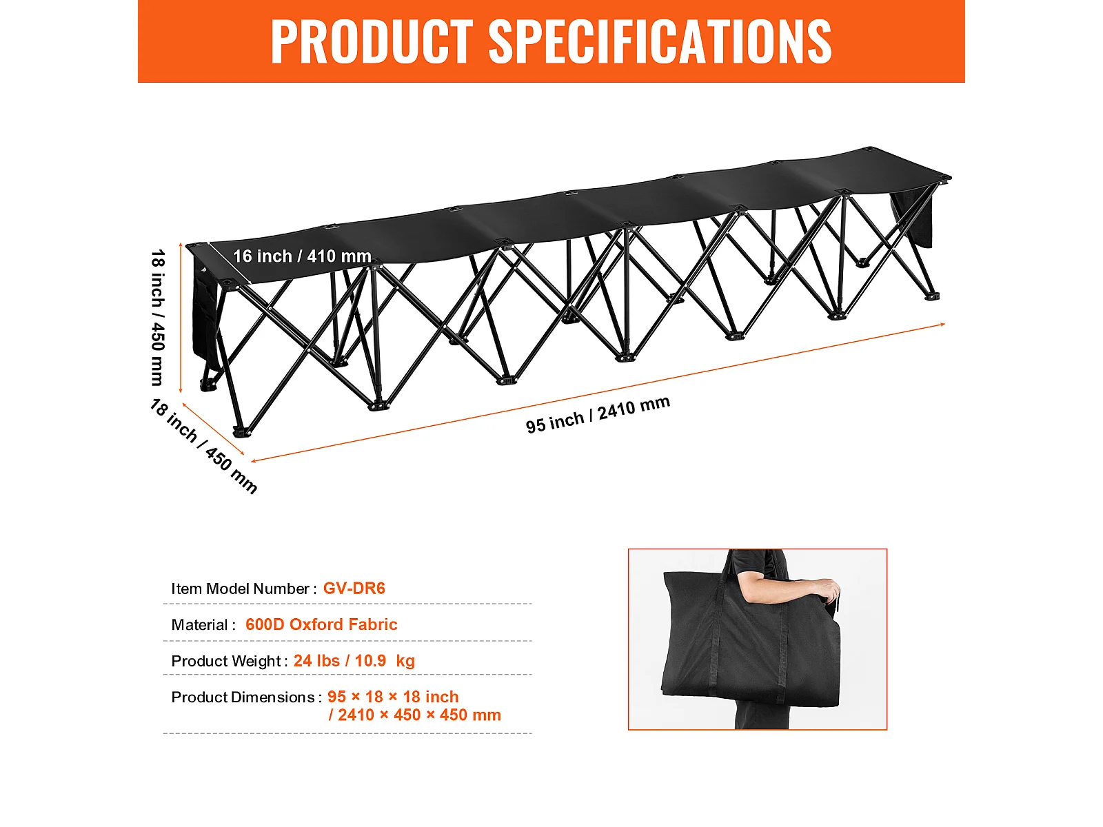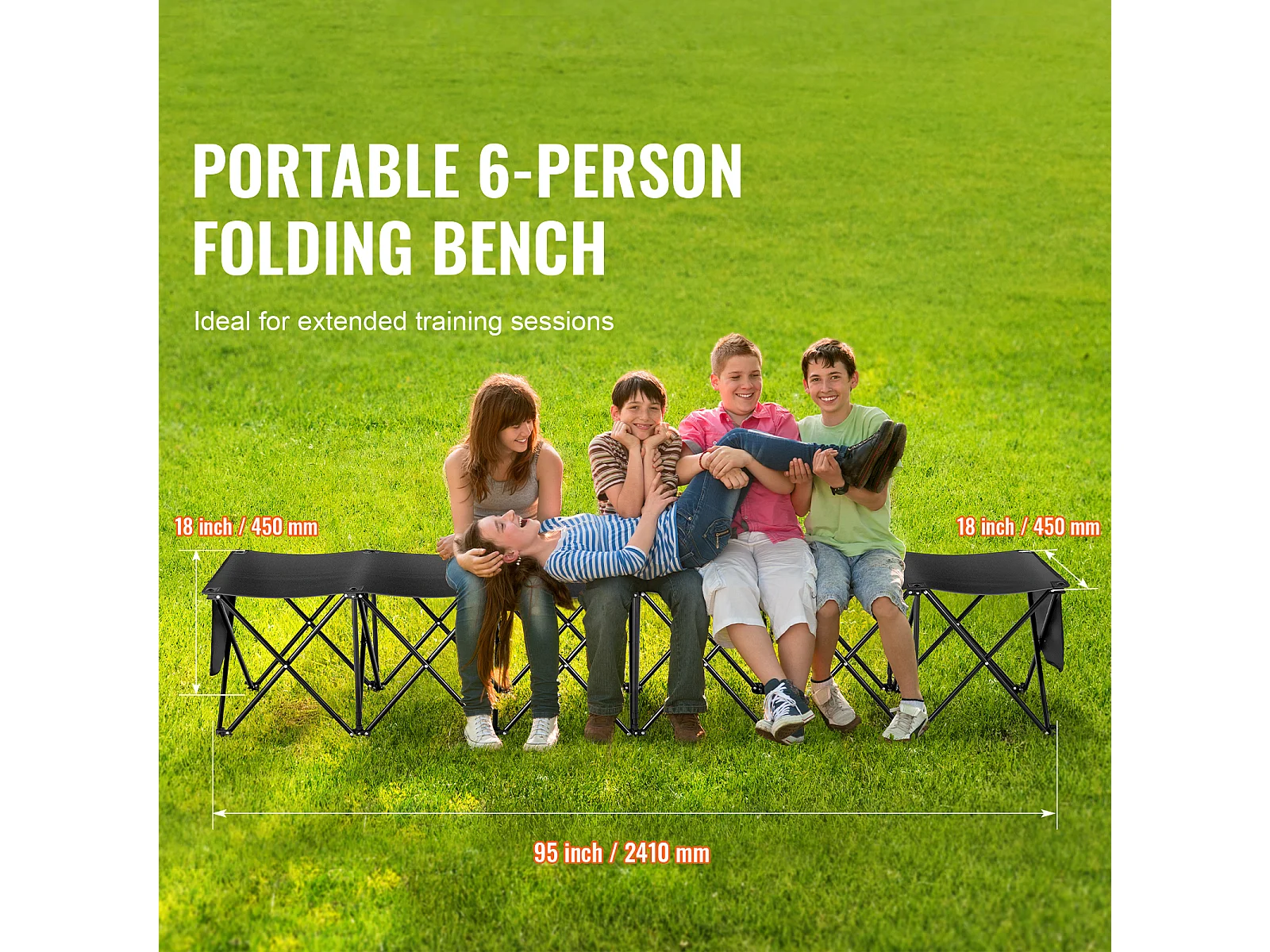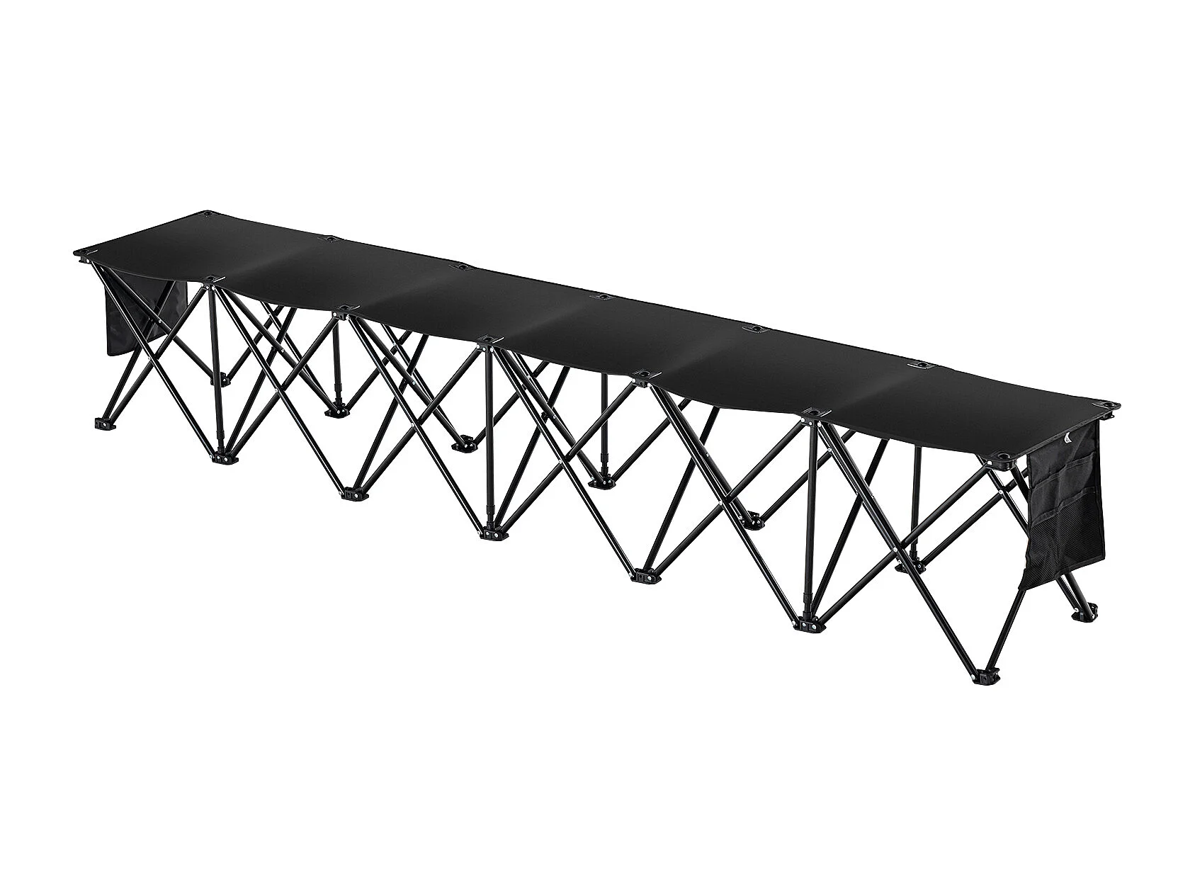 Banc de Sport SucceBuy, 6 Places, Banc d'Extérieur avec Sac de Transport et Dossier, Chaise de Camping en Plein Air, Noir
