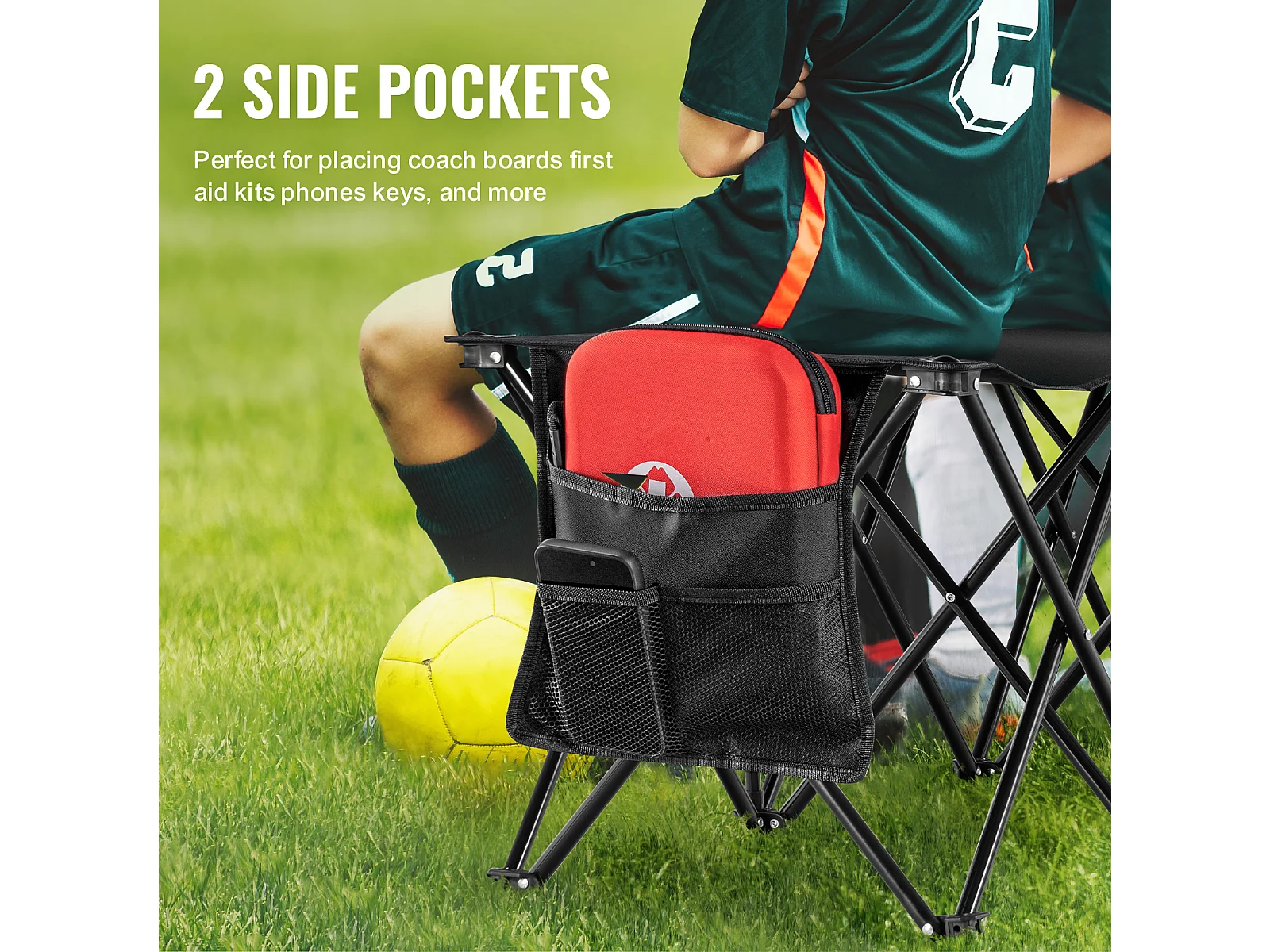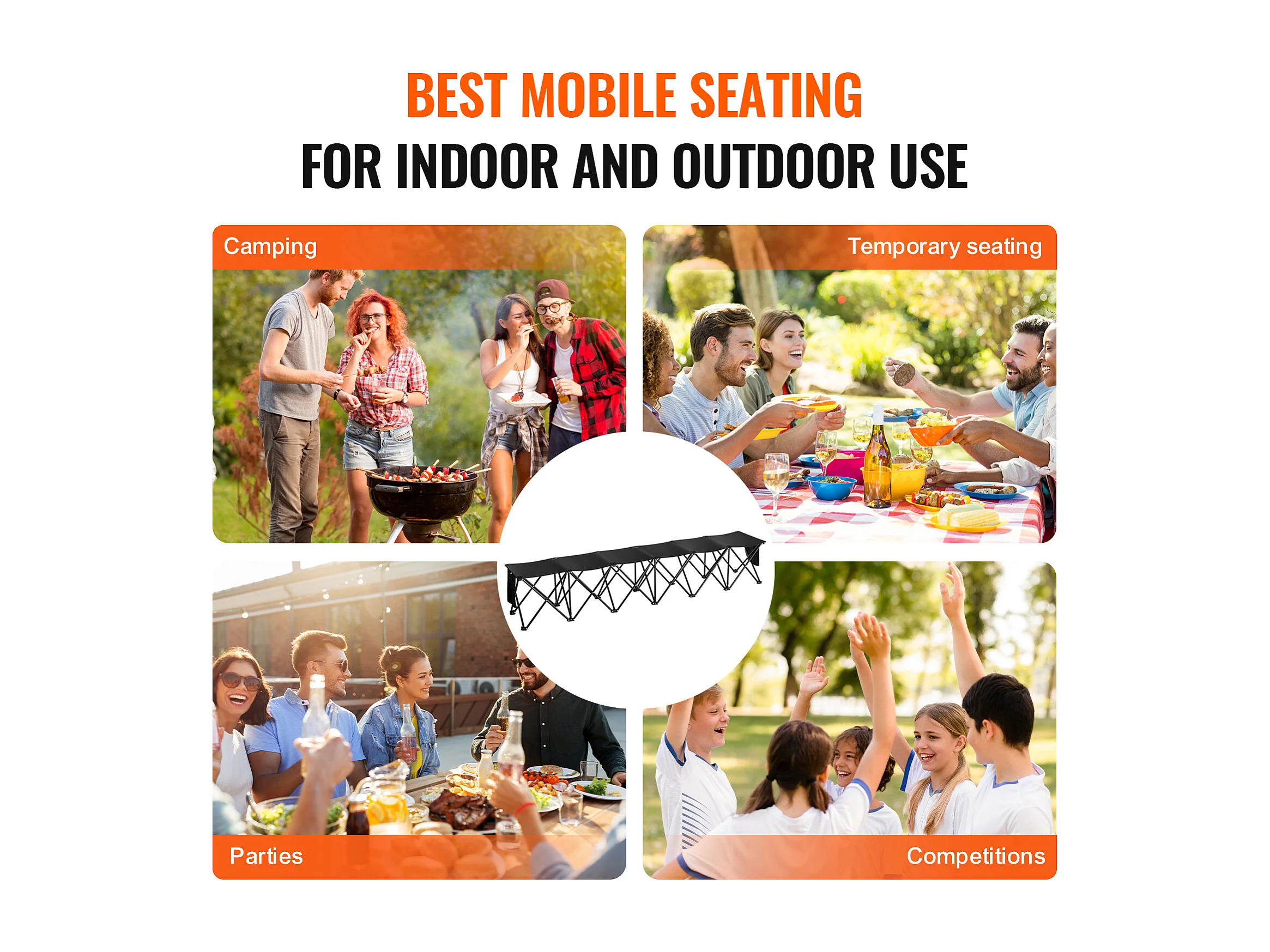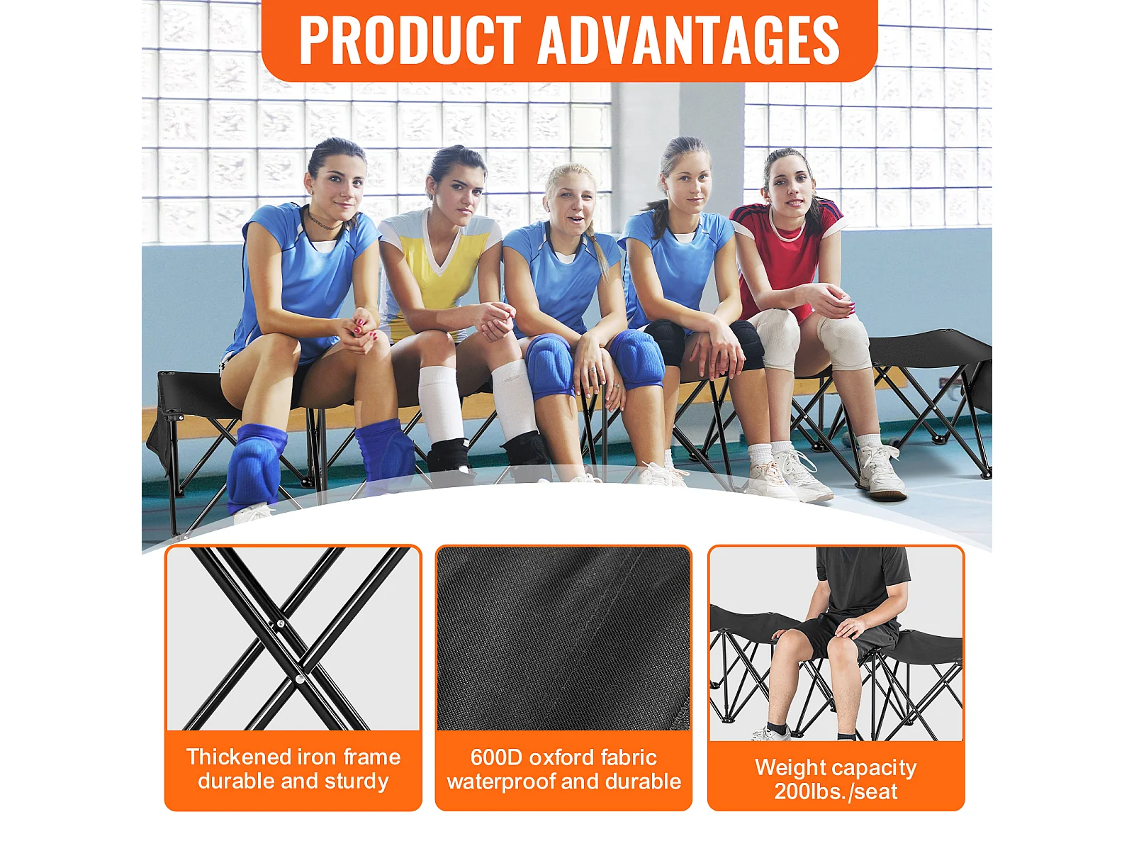 Banc de Sport SucceBuy, 6 Places, Banc d'Extérieur avec Sac de Transport et Dossier, Chaise de Camping en Plein Air, Noir