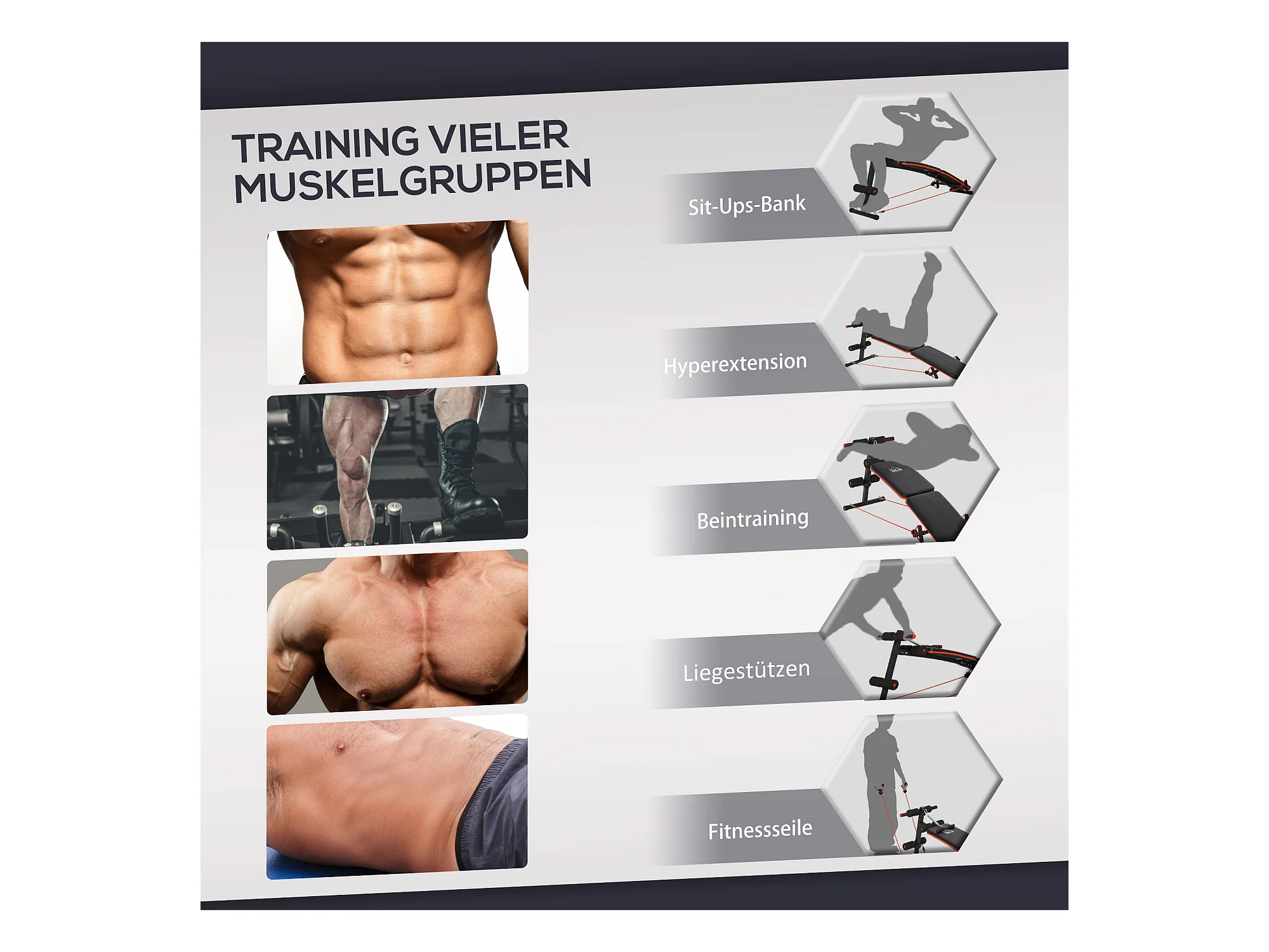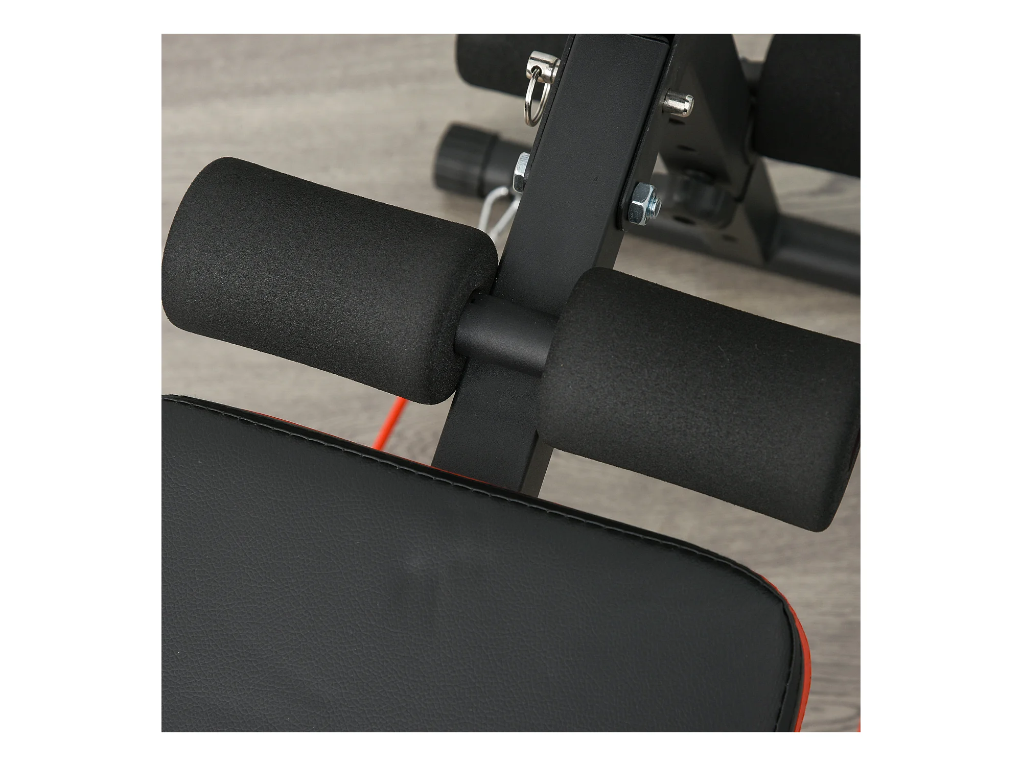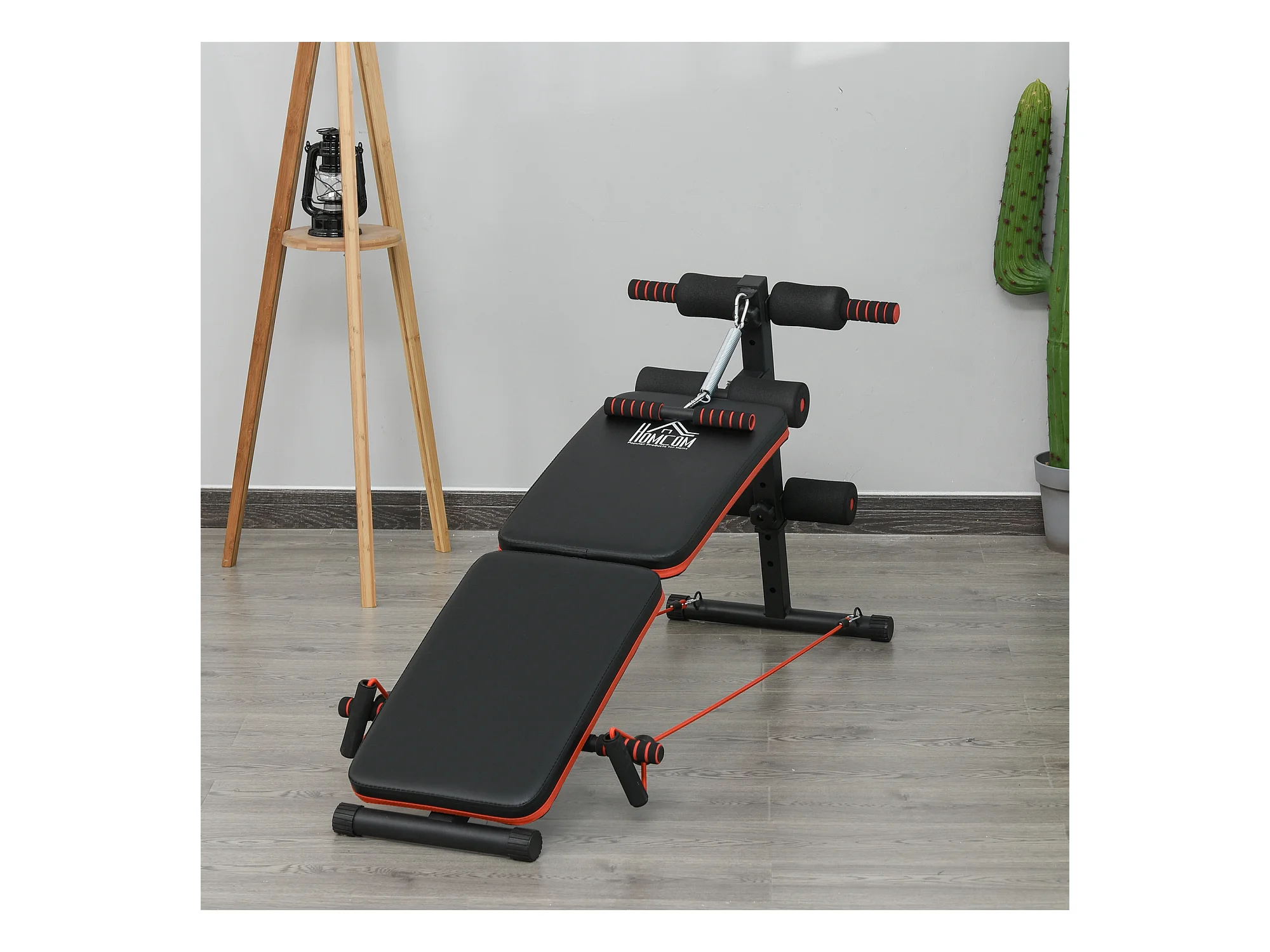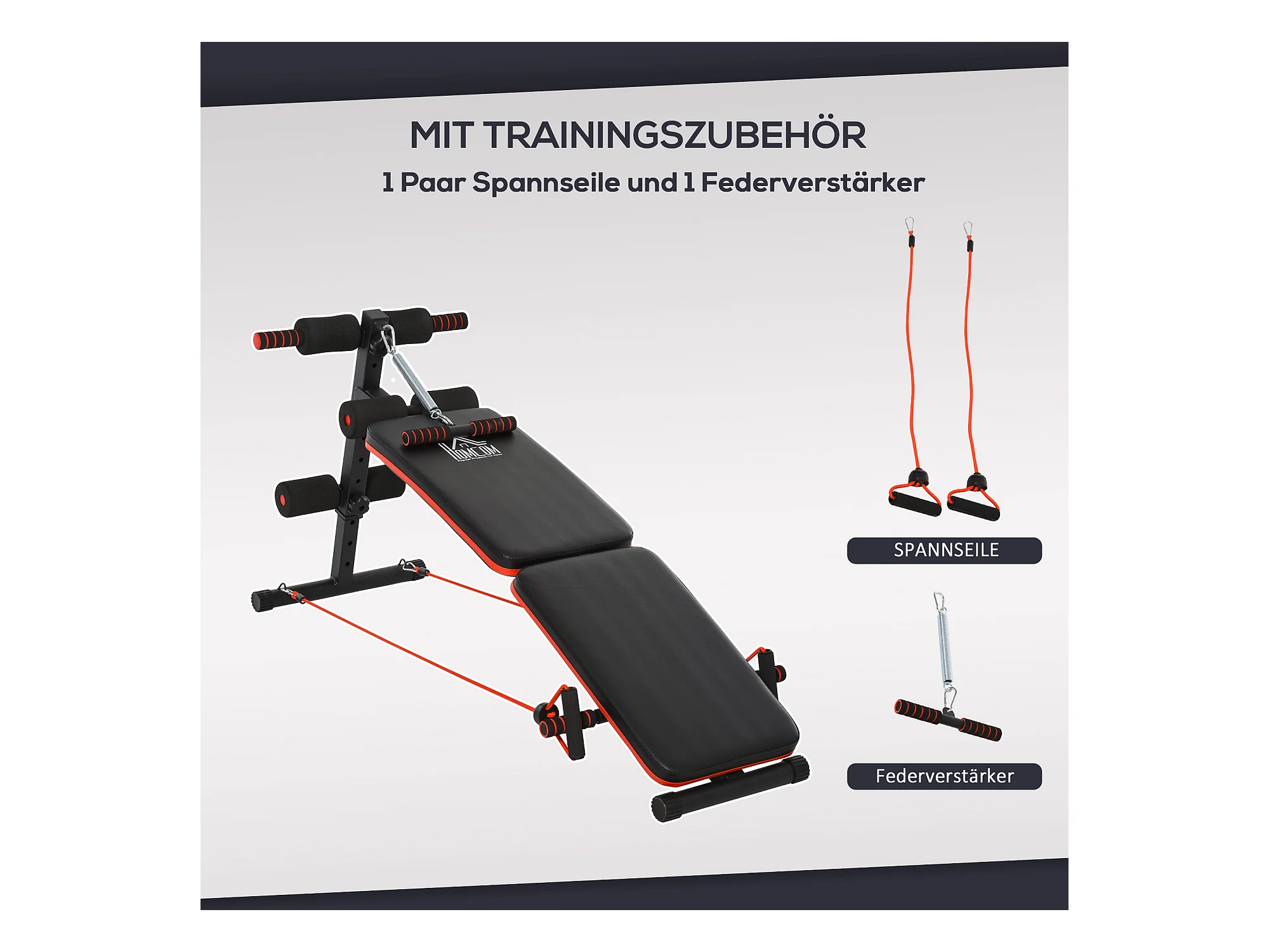 Banc d'entraînement abdominal réglable et pliable, multifonction avec cordes, acier, noir et rouge (137x51x66 cm)