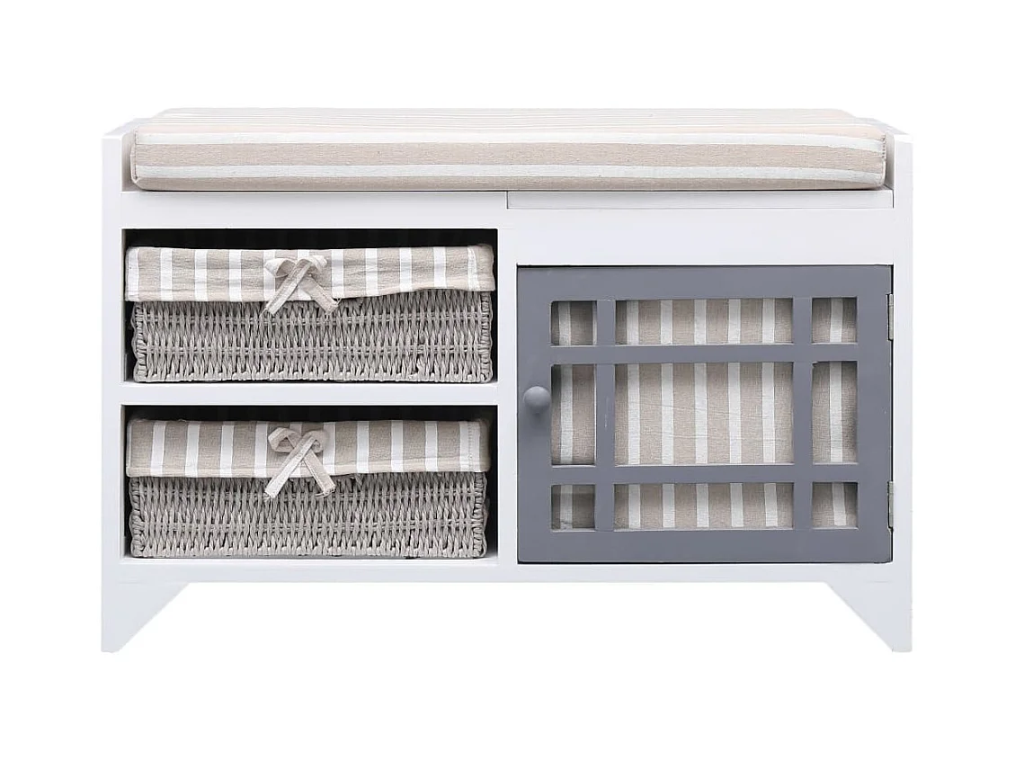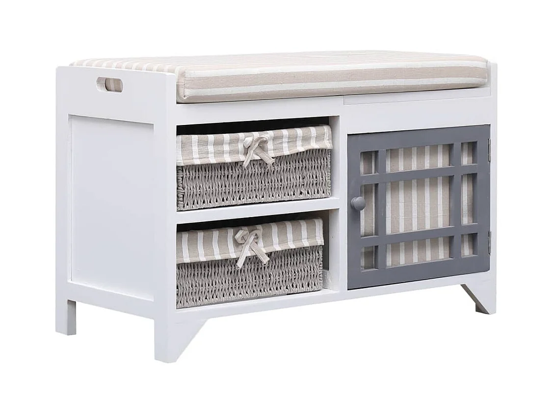 Banc d'entrée et de rangement avec coussin gris 2 tiroirs Blanc