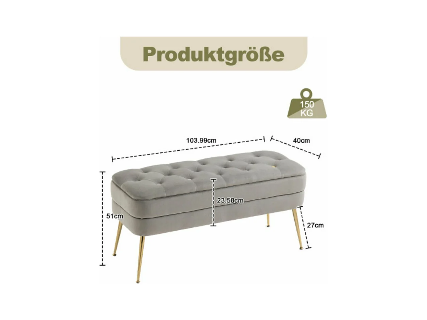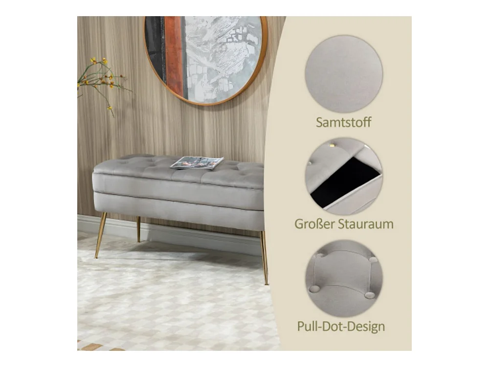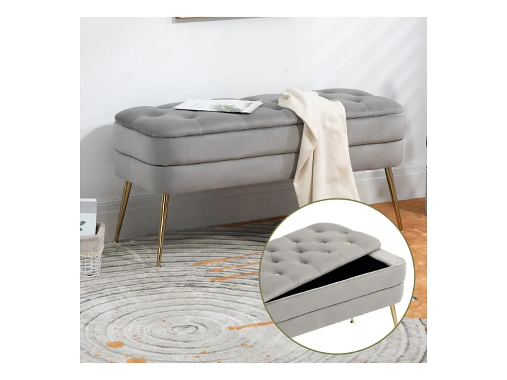 Banc d'extrémité de chambre avec espace de rangement en velours
