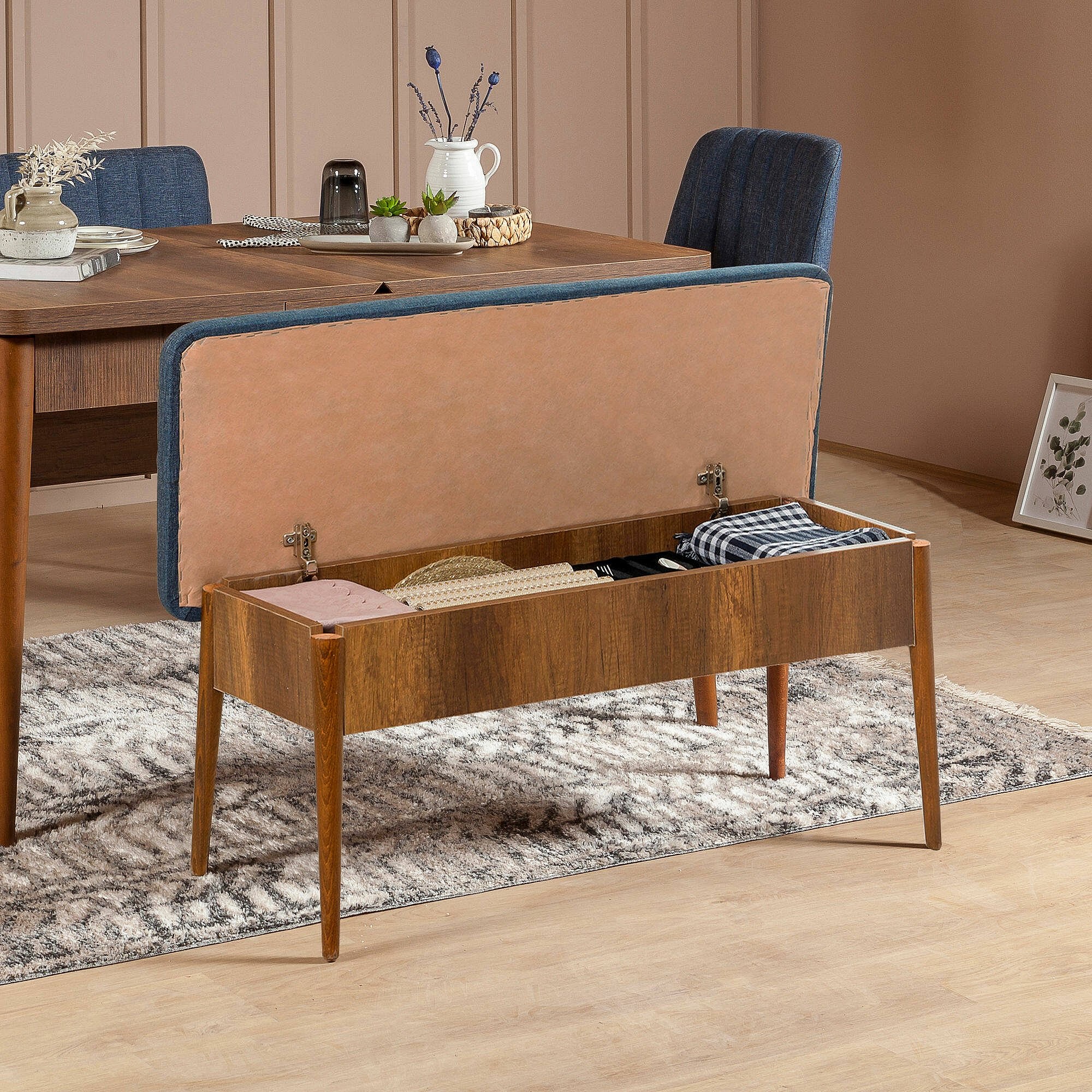 Banc Djansru, Banc polyvalent, Sièges pour les invités, Coffre multifonctionnel, 110x40 h48 cm, Noyer et bleu