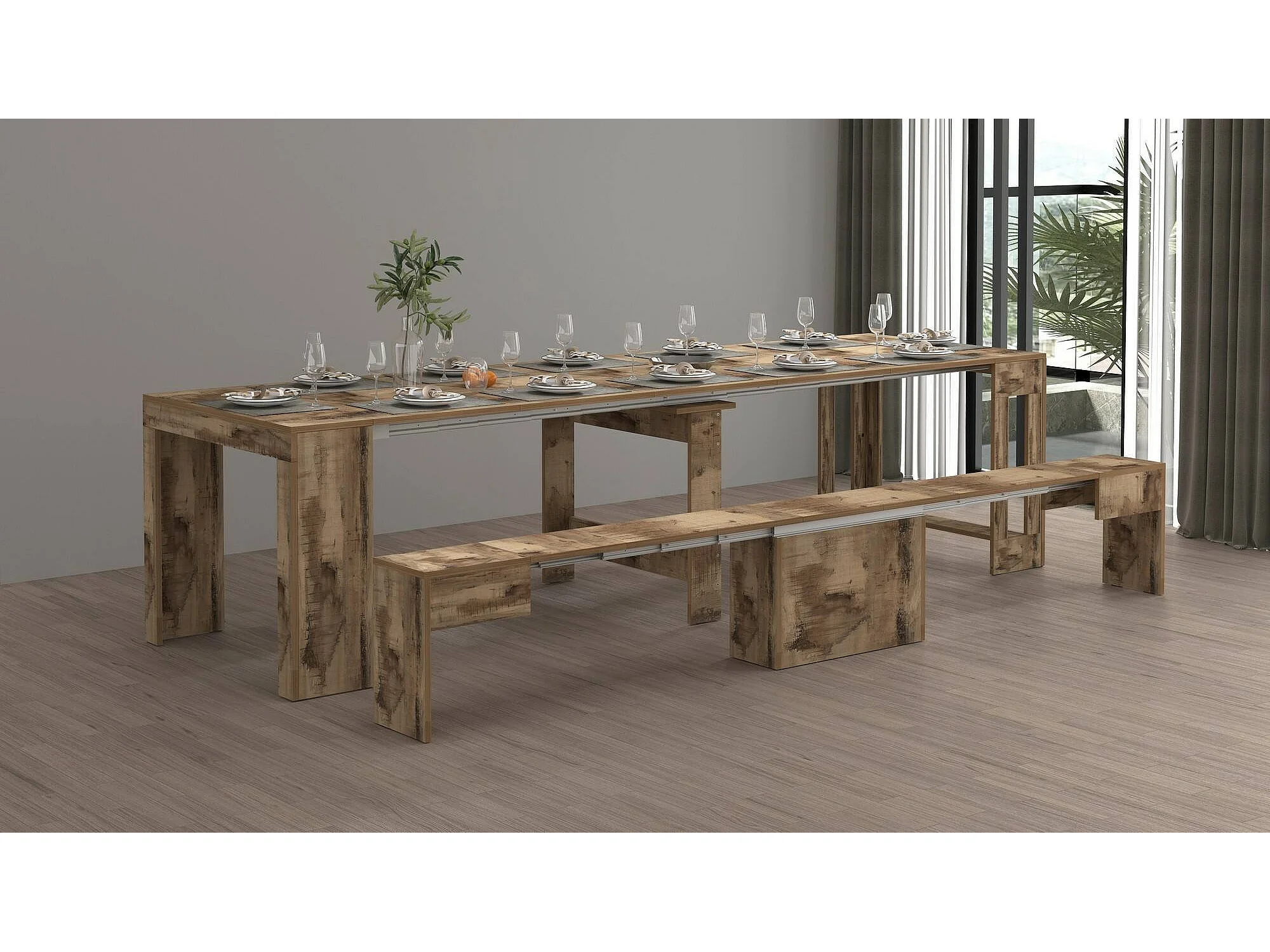 Banc Dollocol, Siège pour table à manger, Banc simple extensible, 290x25h45 cm, Érable