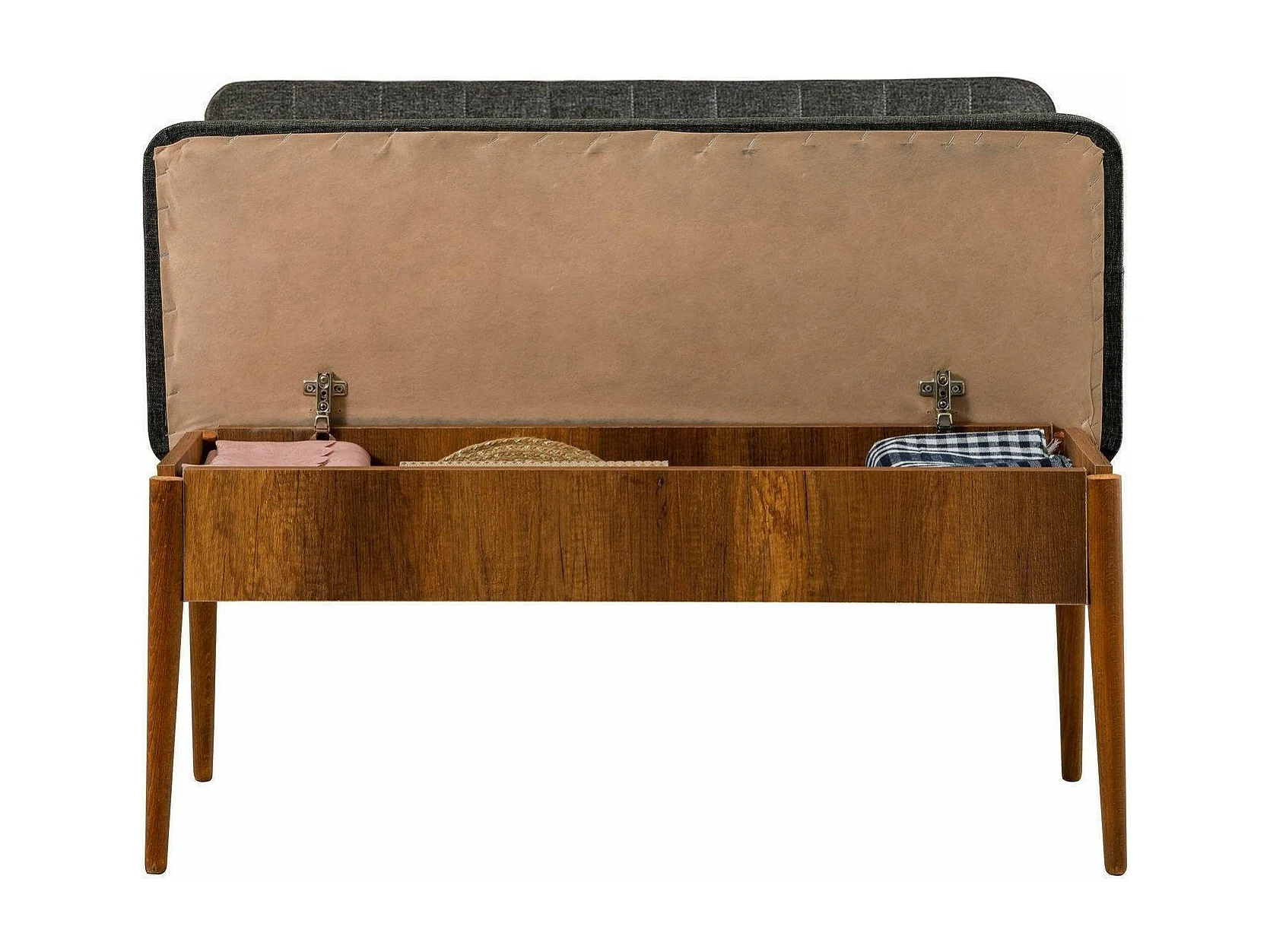 Banc Dpalestr, Banc polyvalent, Sièges pour les invités, Coffre multifonctionnel, 110x40h85 cm, Noyer et Anthracite