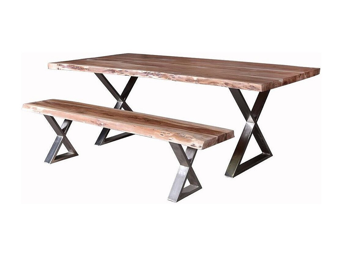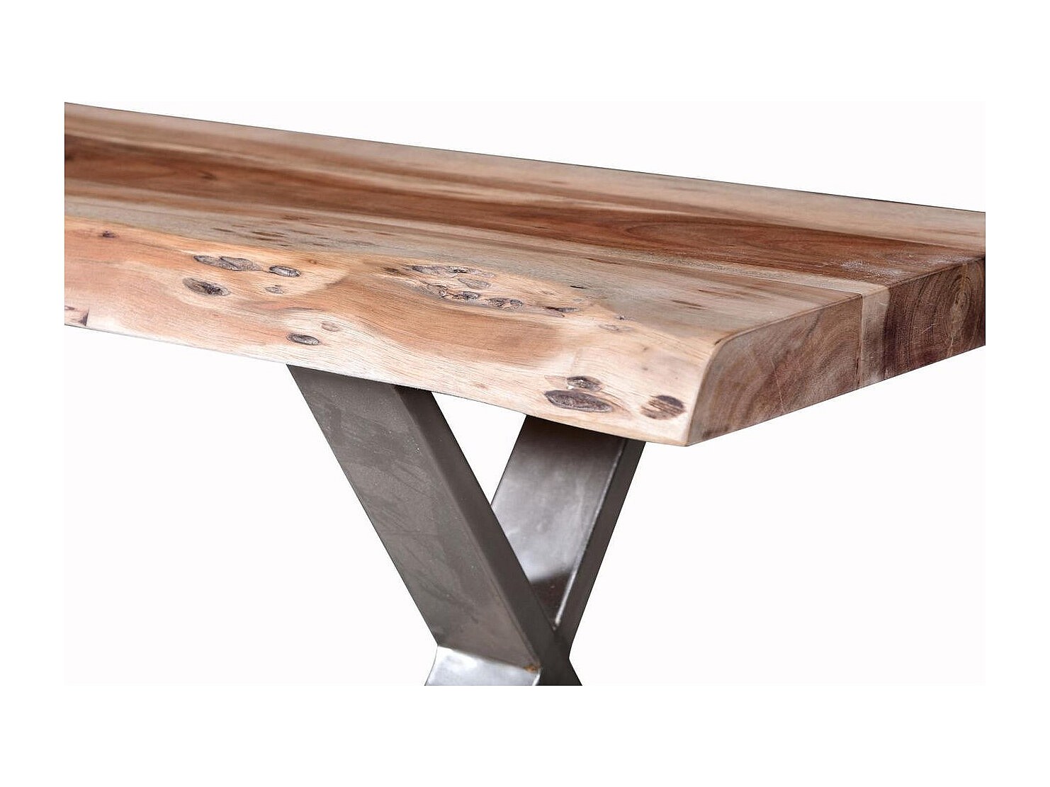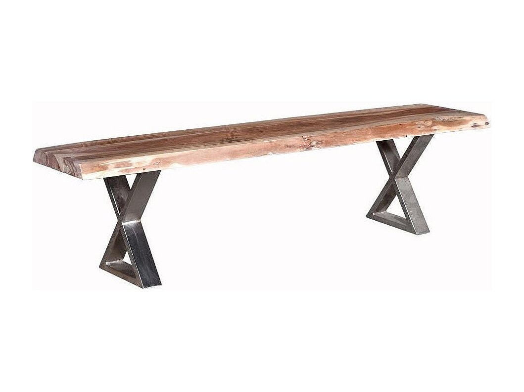 Banc en Bois Massif "Crosa" 200cm Marron & Chrome