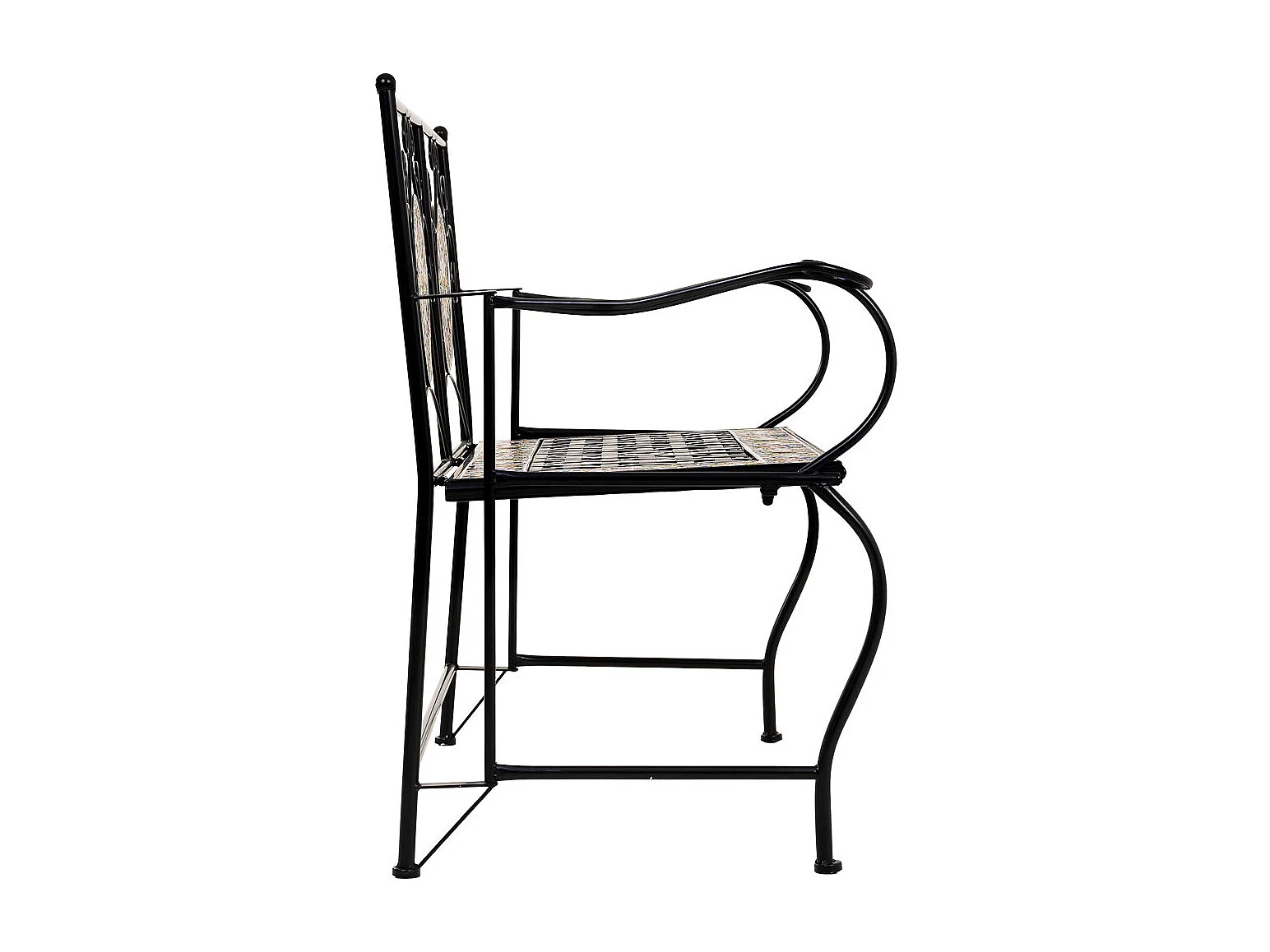 Banc en mosaïque noire et fer forgé 110x50x88h cm
