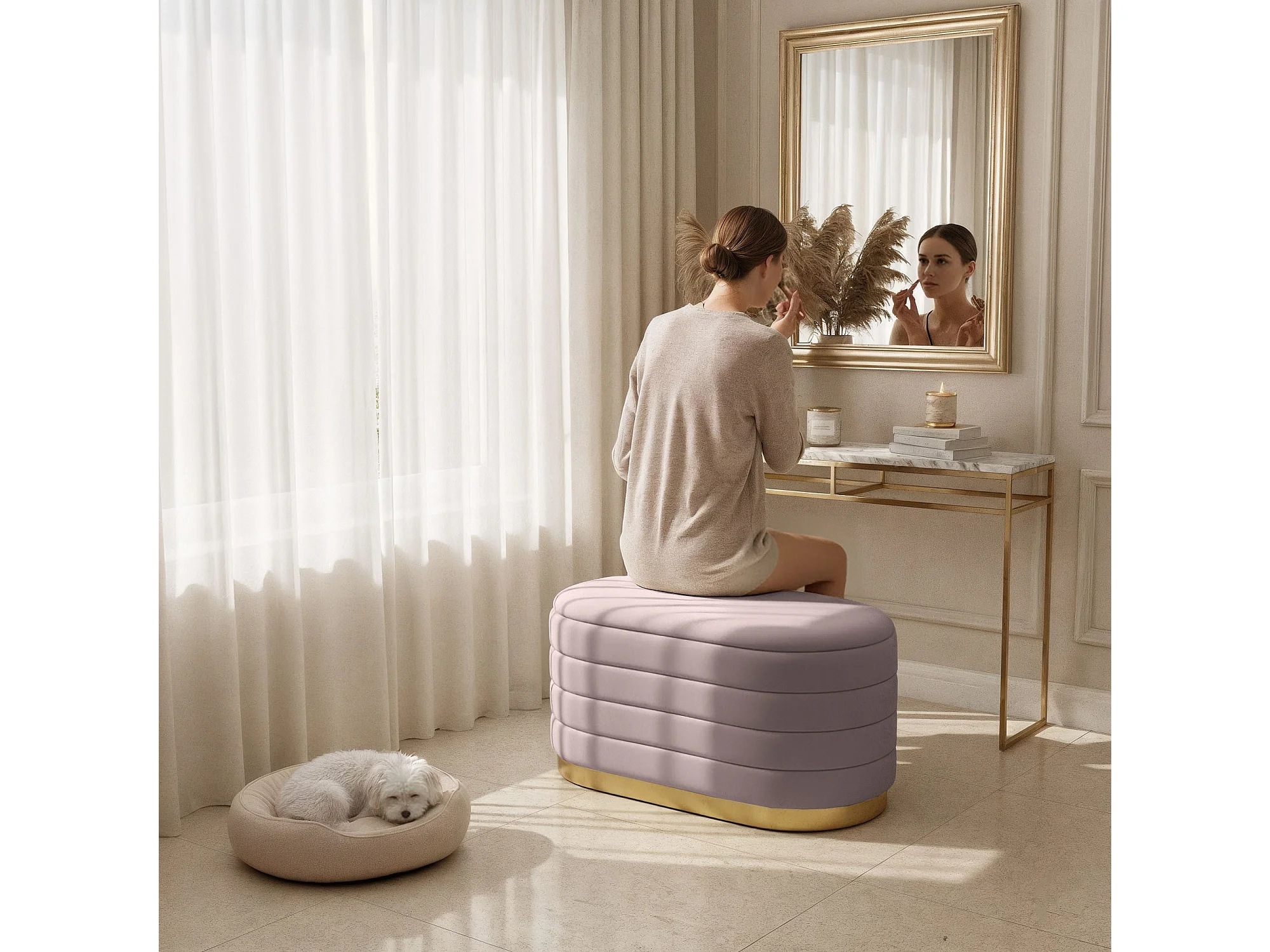 Banc en velours avec rangement 80 cm BELLA Rose Poudré