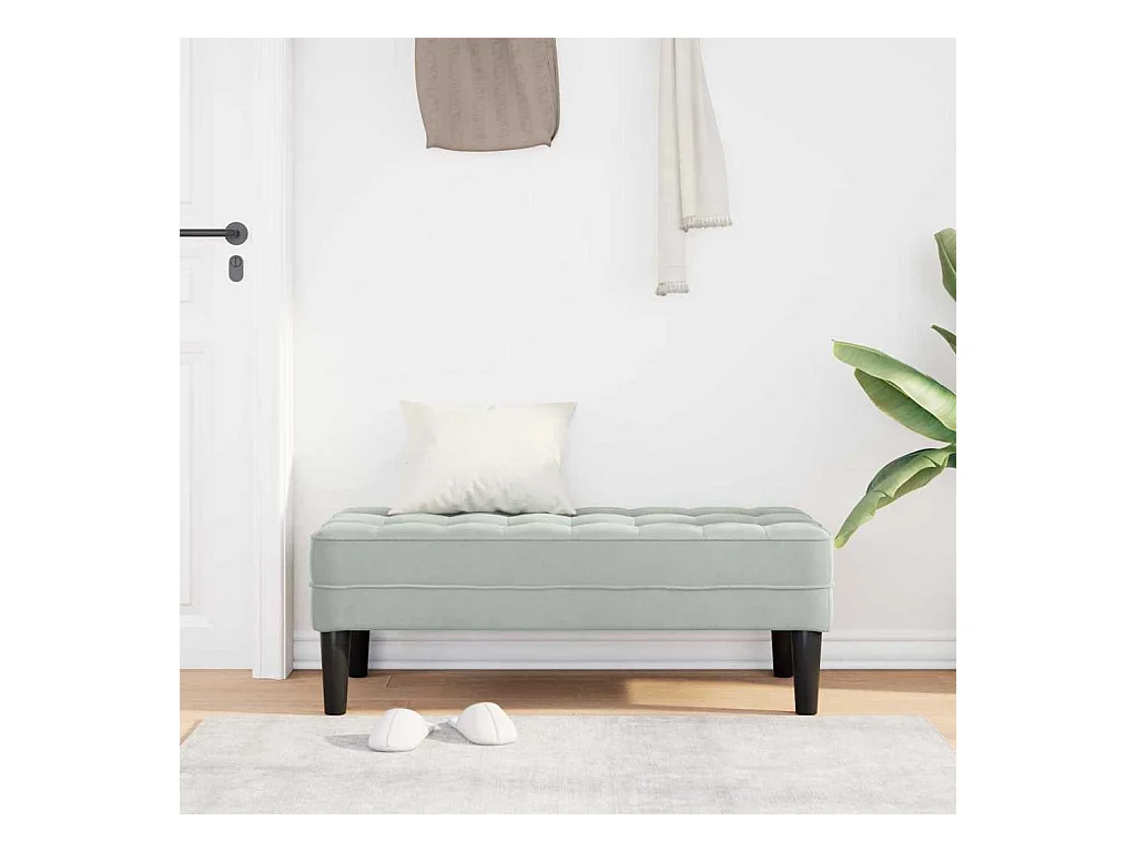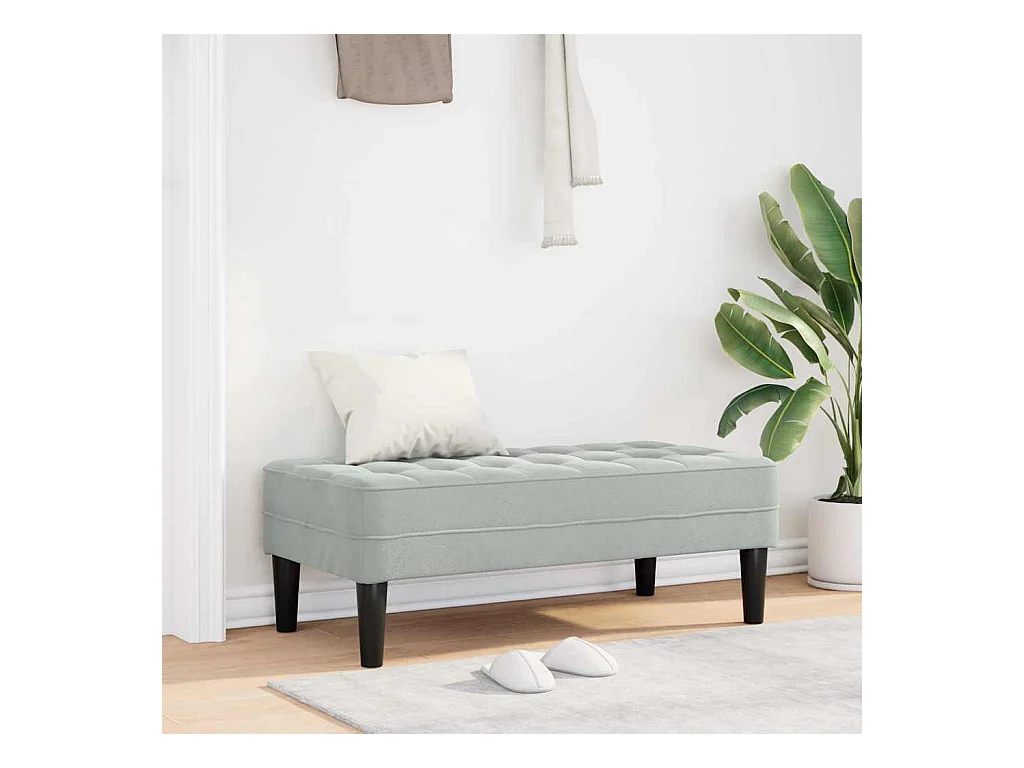 Banc rembourré élégant, structure bois massif, mousse latex, gris clair, multifonction pour salon et chambre (117x40x58cm)