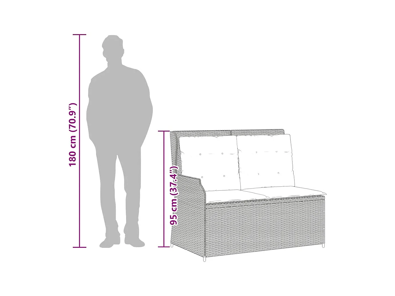 Banc de jardin avec coussin beige 110x40x44 cm résine tressée