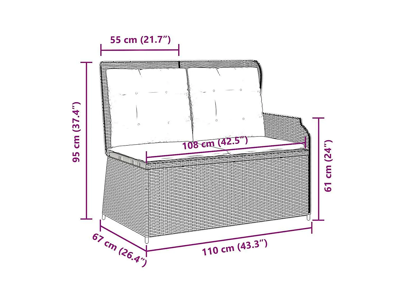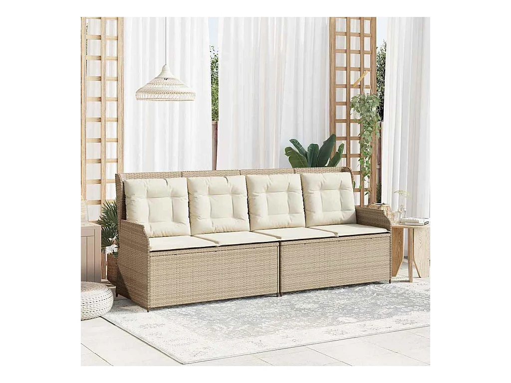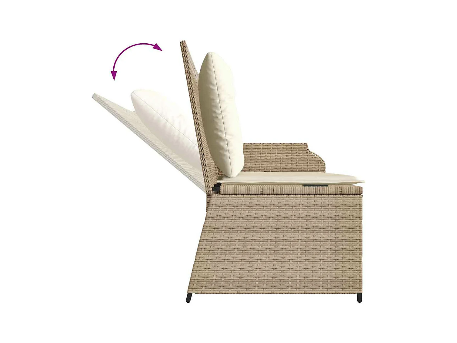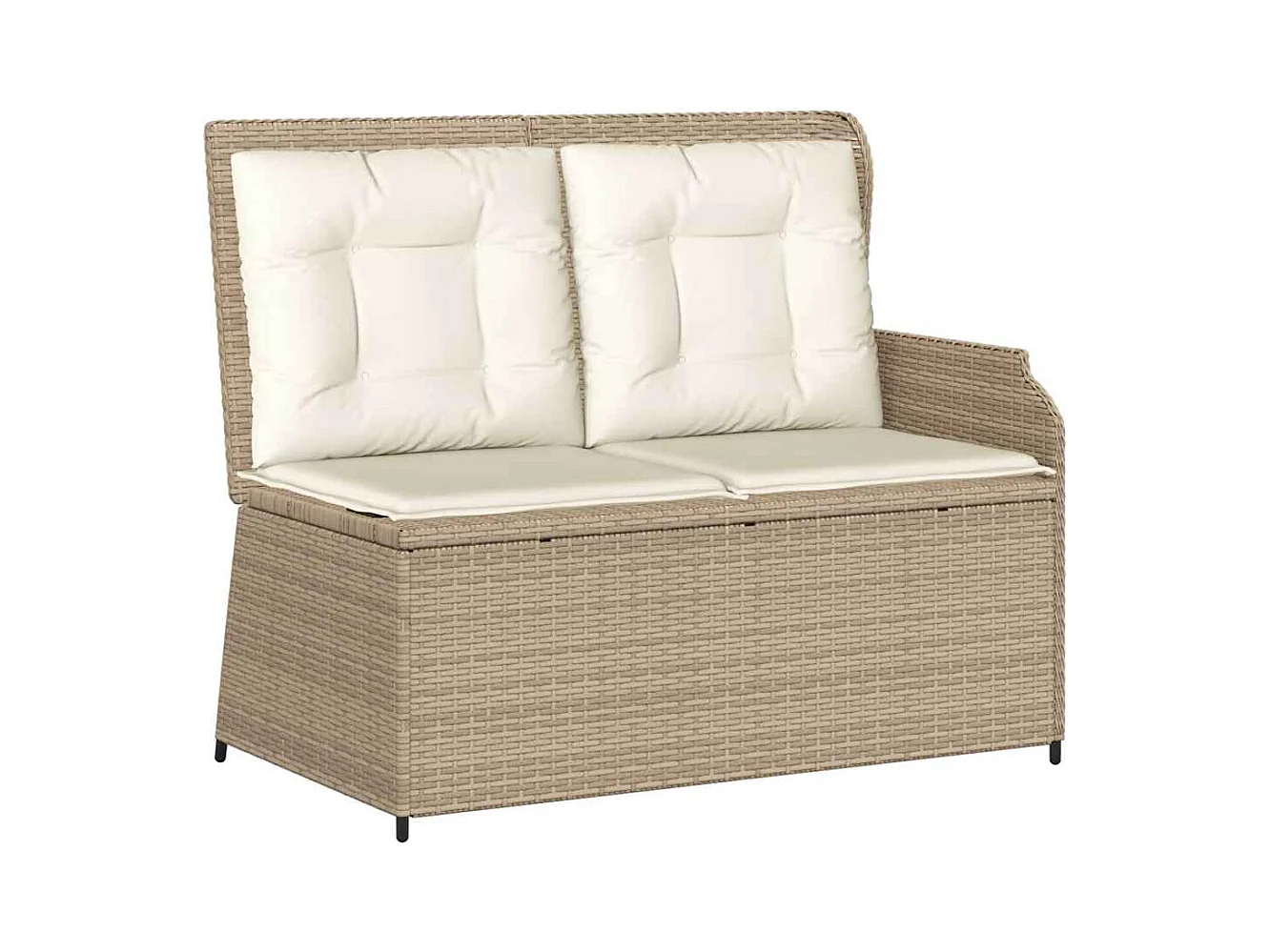 Banc de jardin avec coussin beige 110x40x44 cm résine tressée