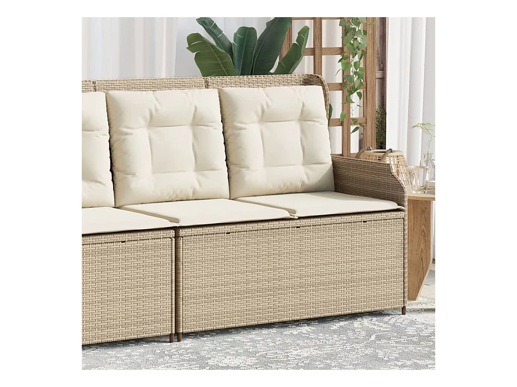 Canapé de jardin avec coussins 2 places beige résine tressée