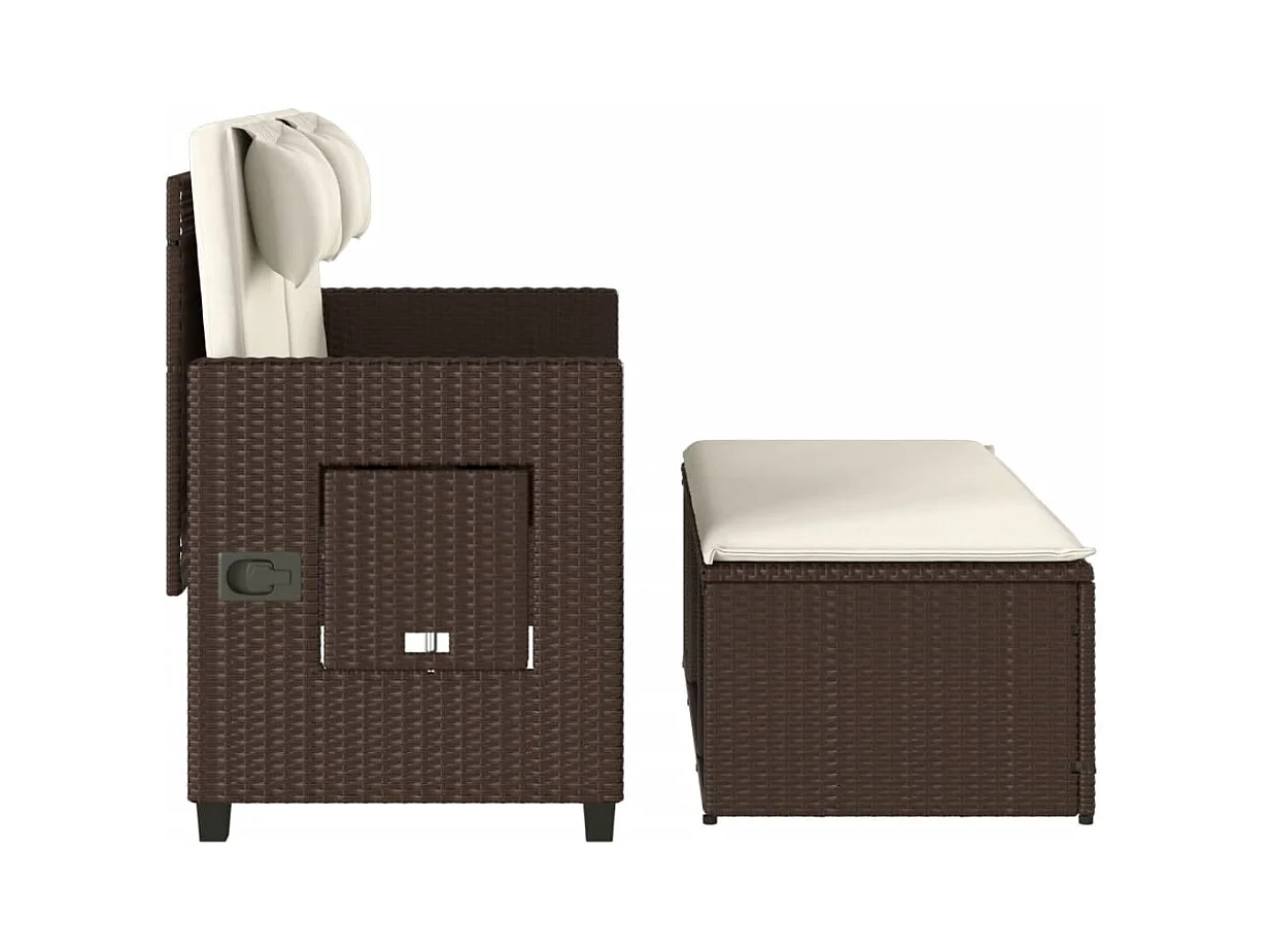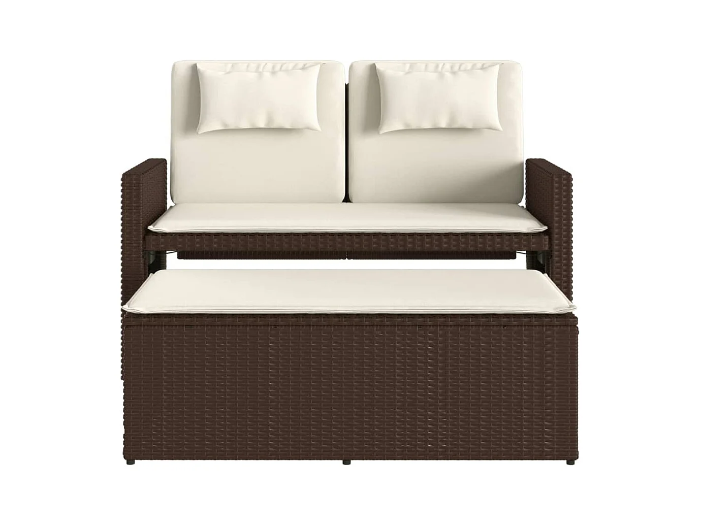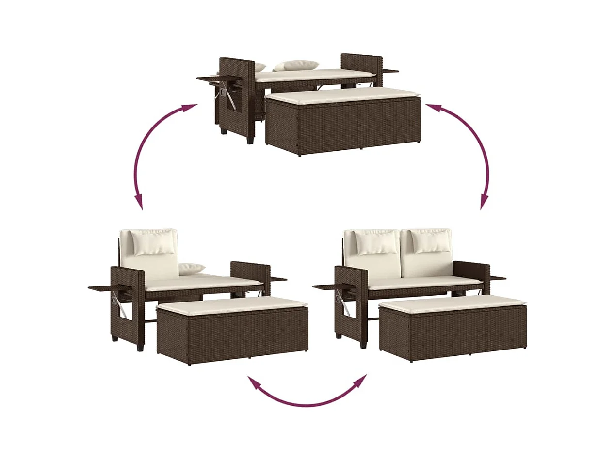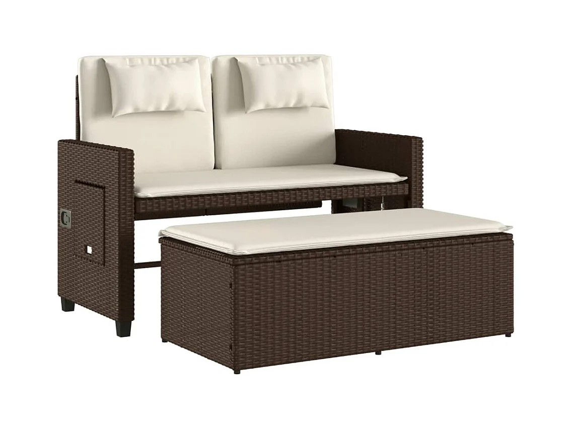 Banc de jardin et coussins et repose-pied marron résine tressée