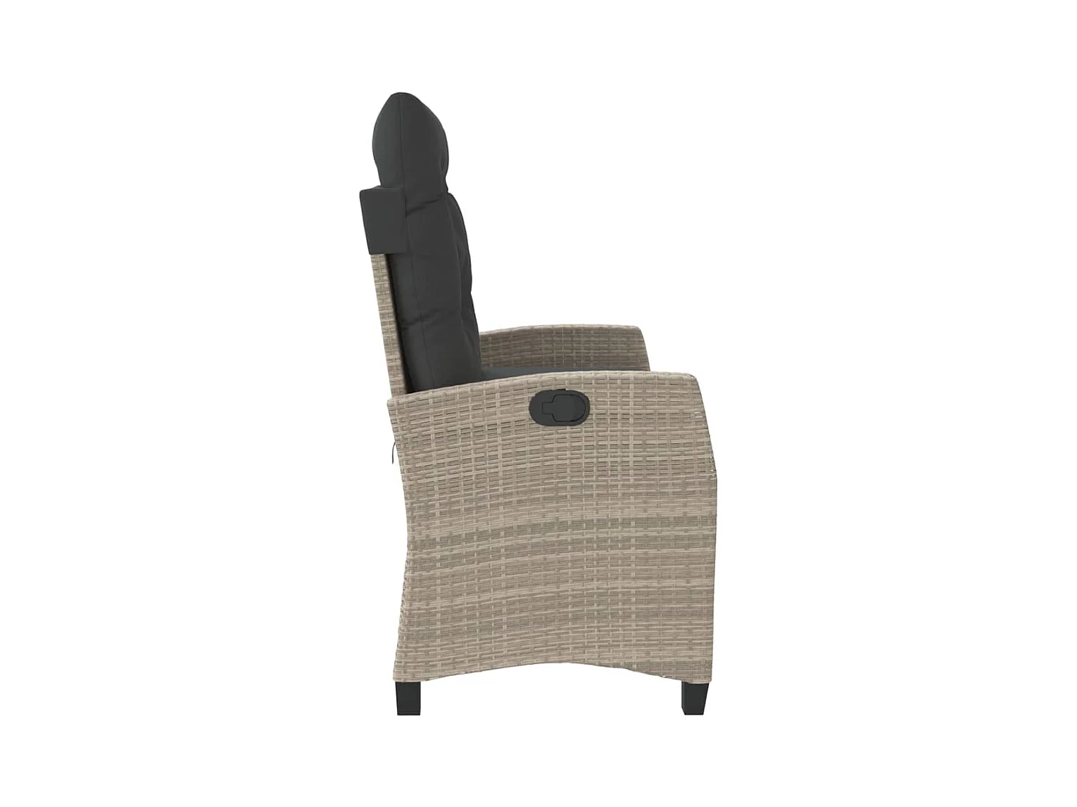Banc inclinable de jardin et coussins gris clair résine tressée