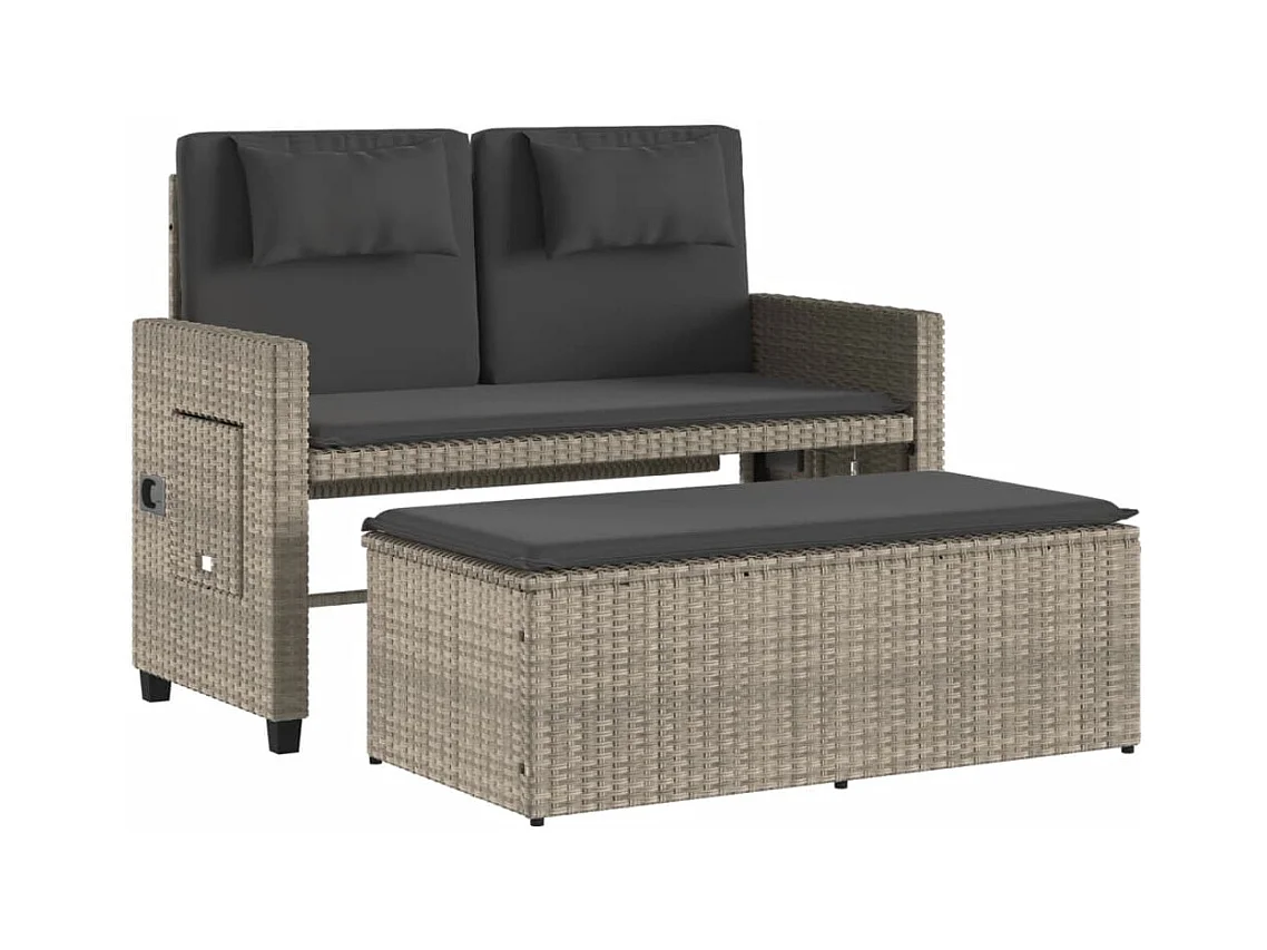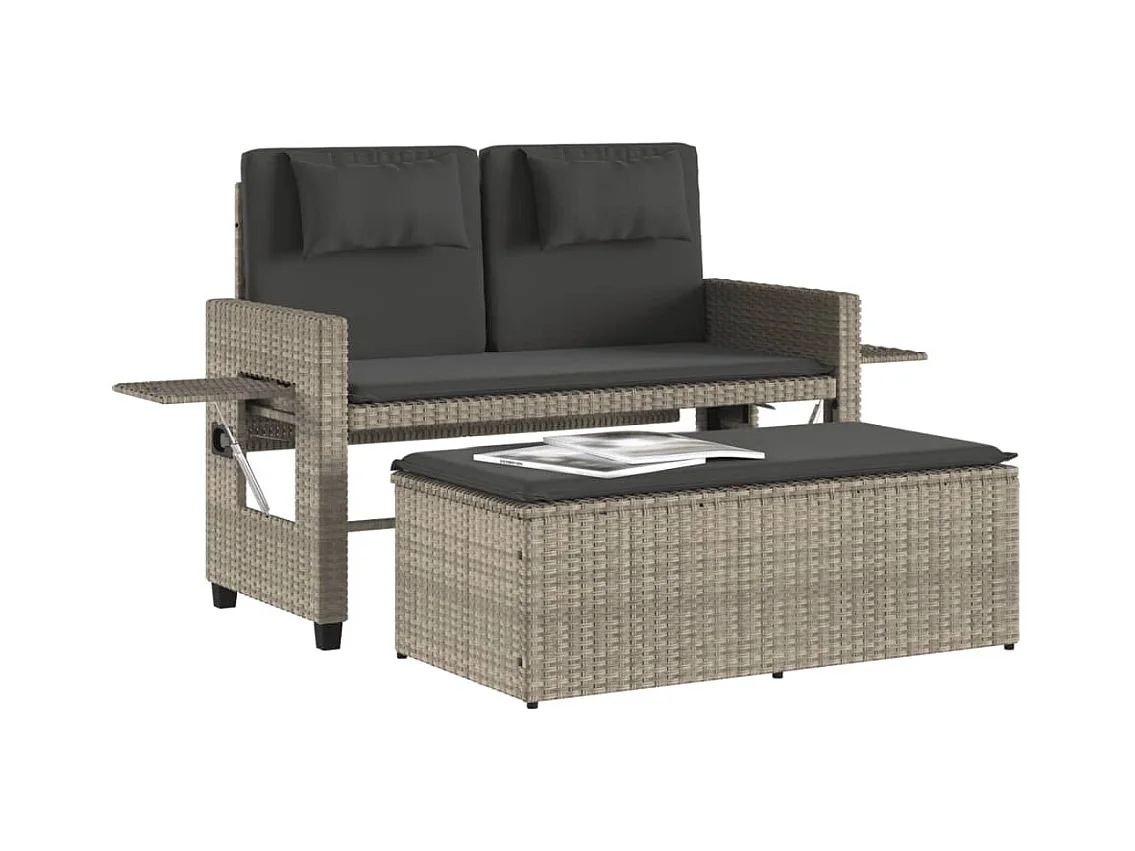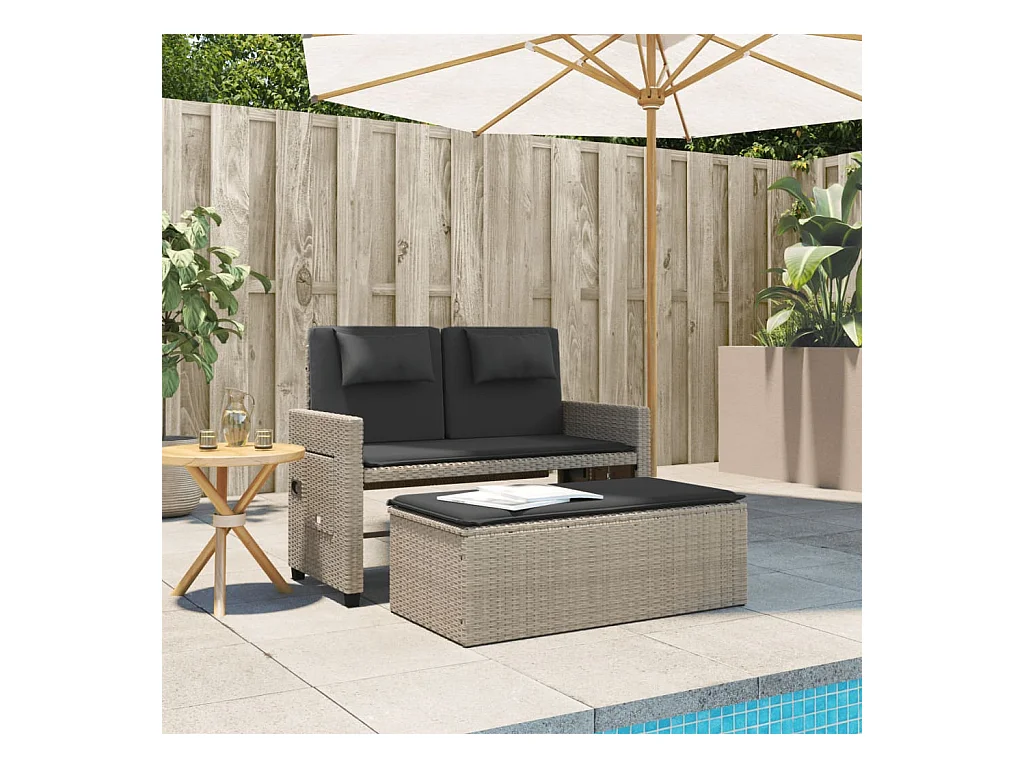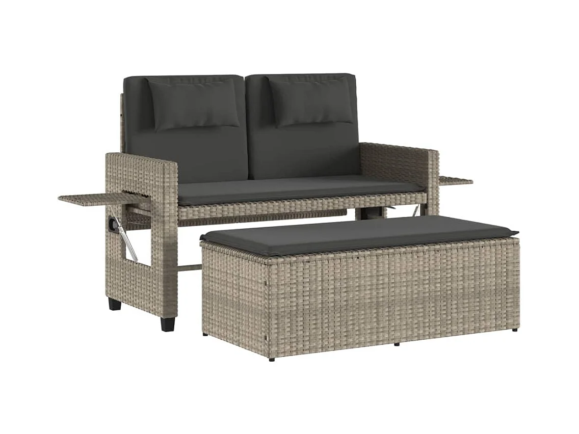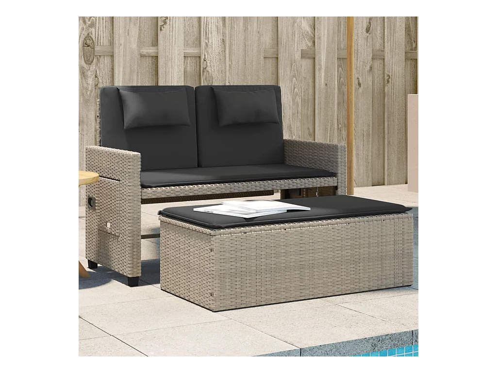 Banc de jardin avec coussins et repose-pied gris résine tressée FR178711