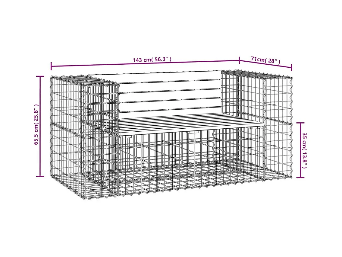 Banc de jardin design gabion 143x71x65,5cm bois de pin imprégné
