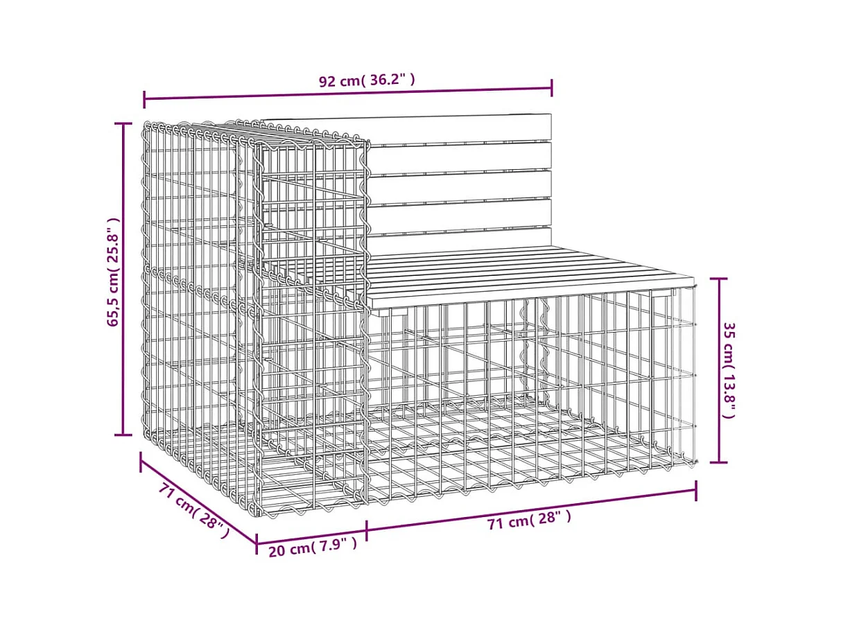 Banc de jardin design gabion 92x71x65,5cm bois de pin imprégné