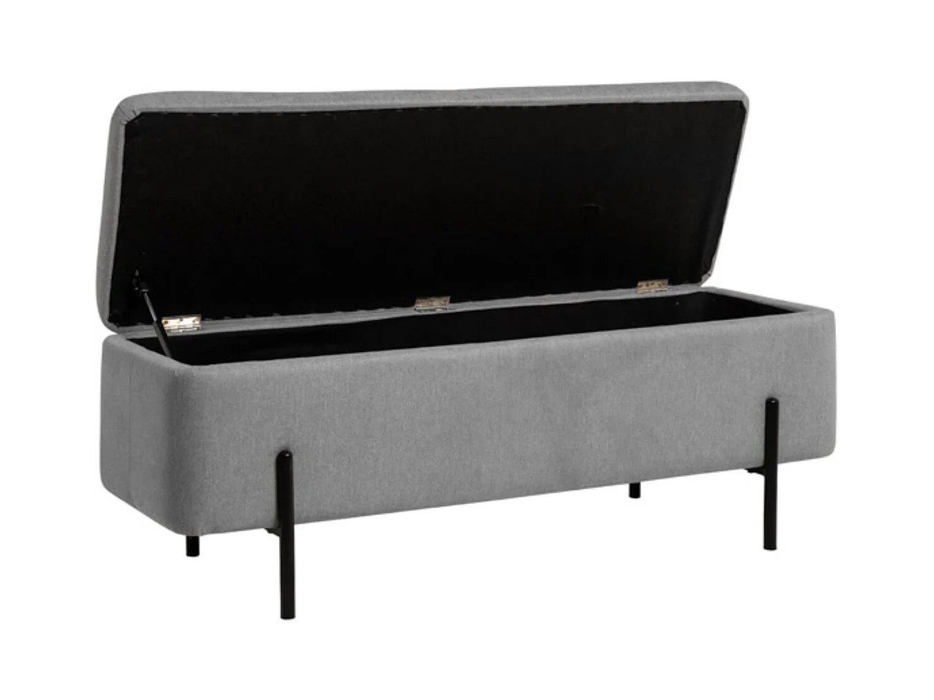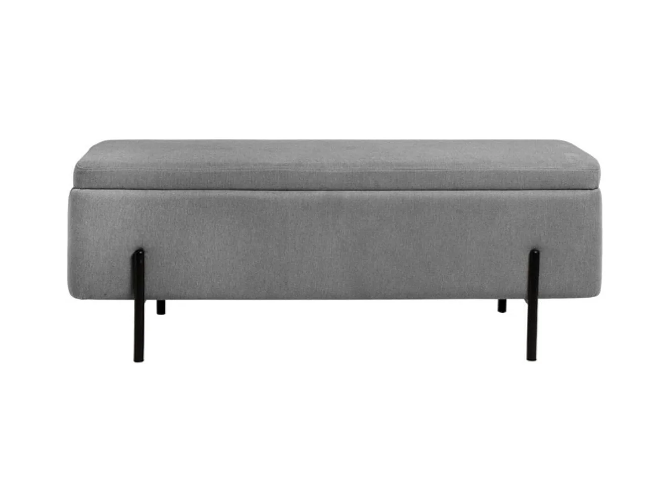 Banc moderne avec coffre de rangement tissu et pieds en métal noir Navika-Couleur Gris