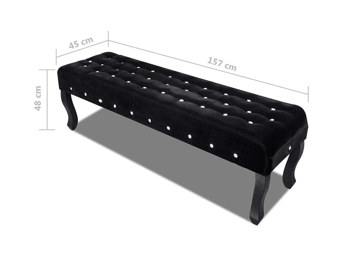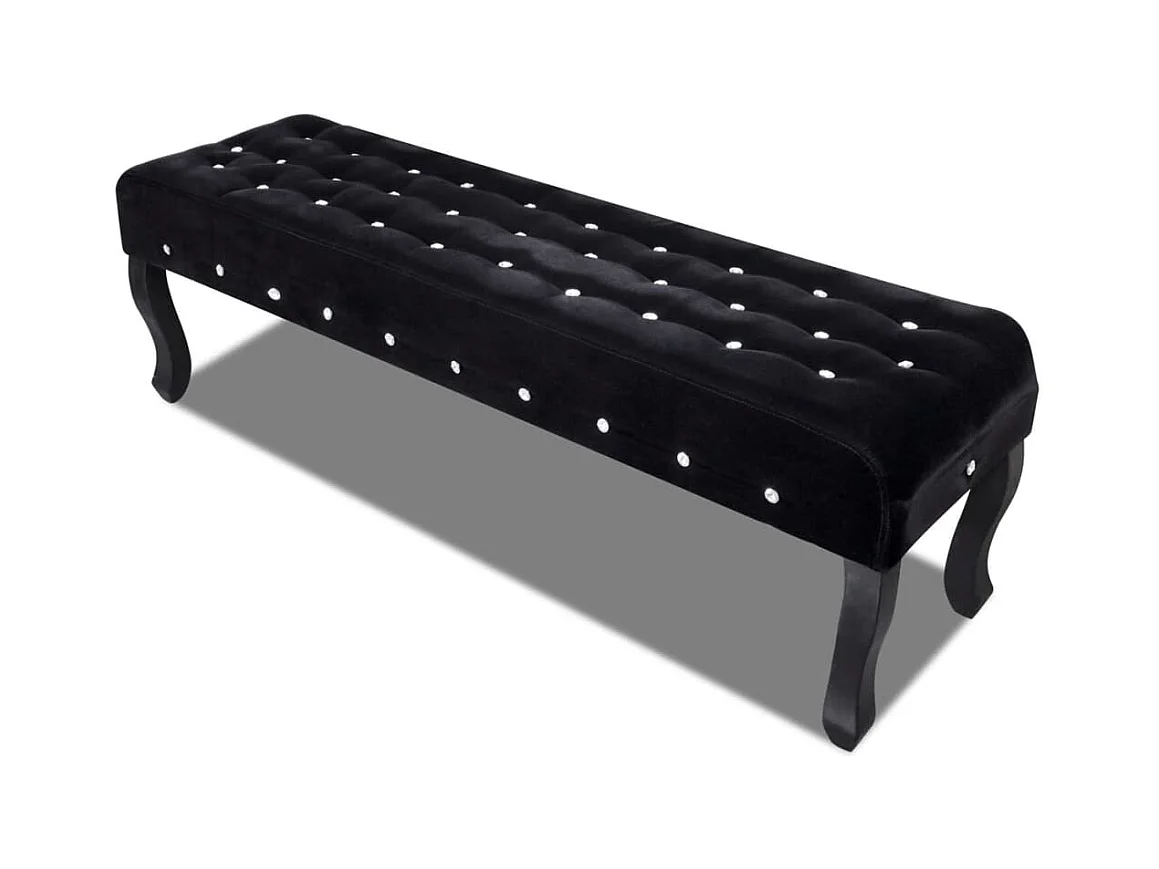 Banc noir tissu velours avec boutons en cristal