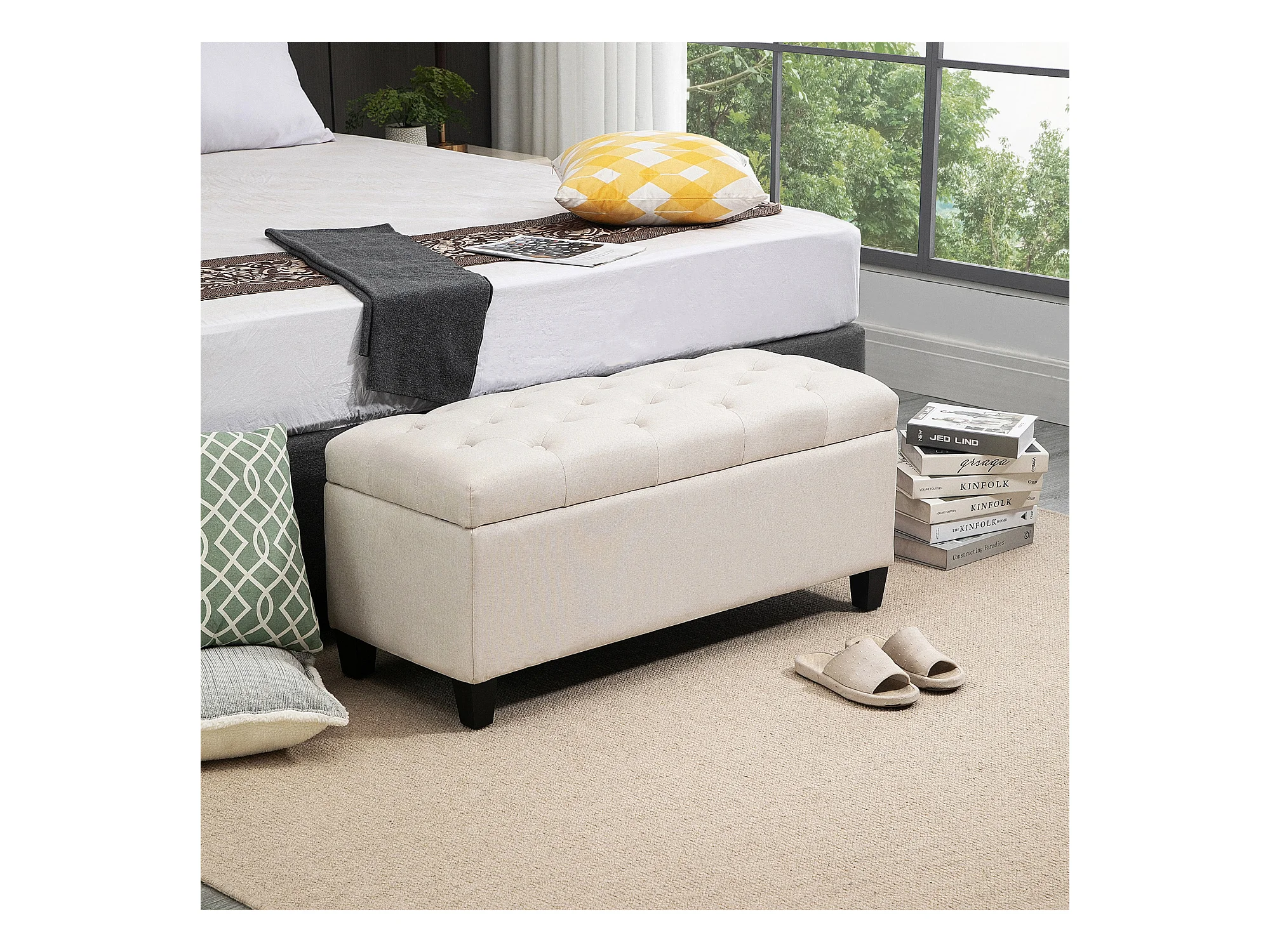 Banc rembourré avec rangement,aspect lin,banc de lit avec pieds en acier,100x40x49cm,crème