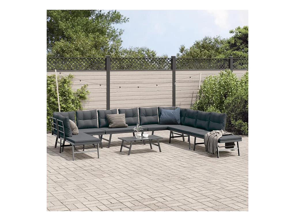 Bancs de jardin avec coussins lot de 8 acier enduit de poudre