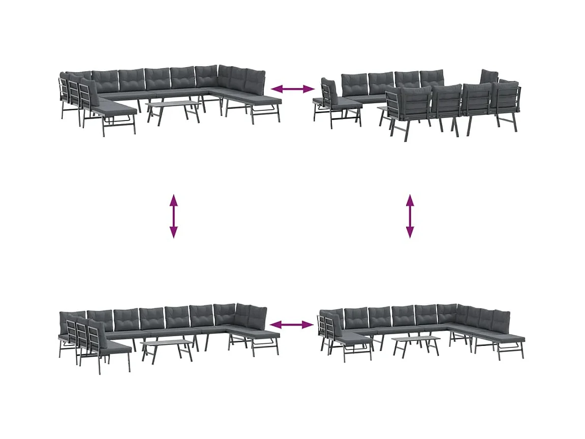 Bancs de jardin avec coussins lot de 4 acier enduit de poudre