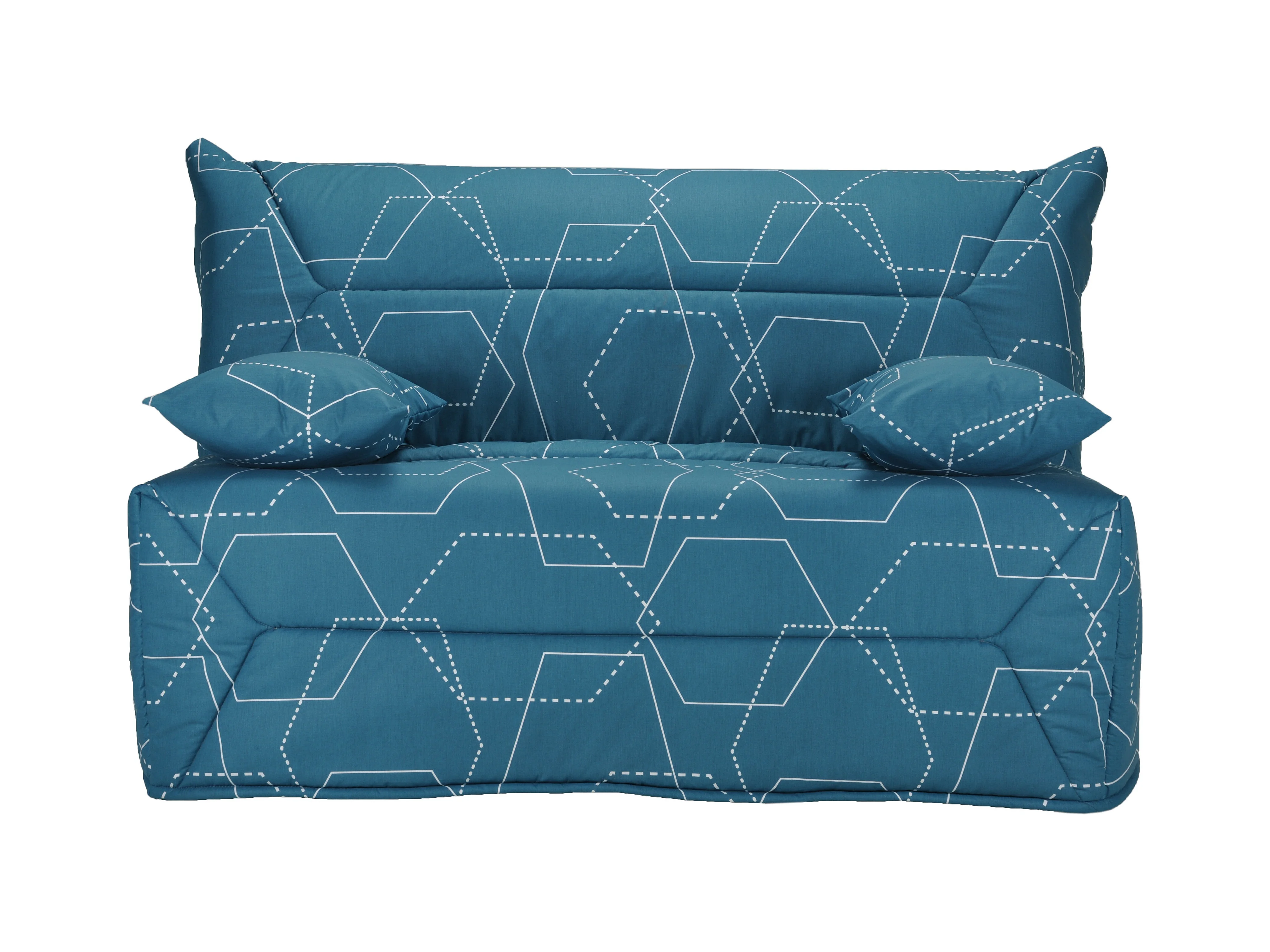 Banquette BZ 140x190 tissu graphique bleu matelas 12cm City essentiel