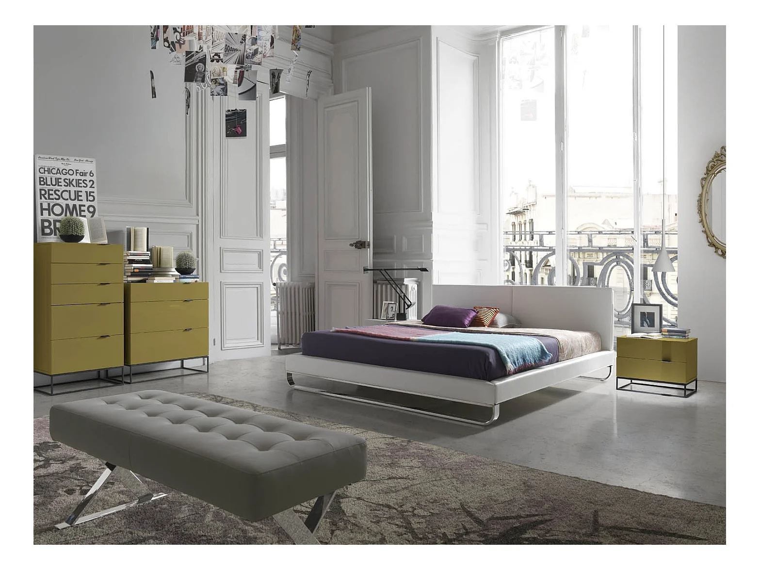Banquette capitonnée simili cuir blanc et pieds acier inoxydable Dez 120cm