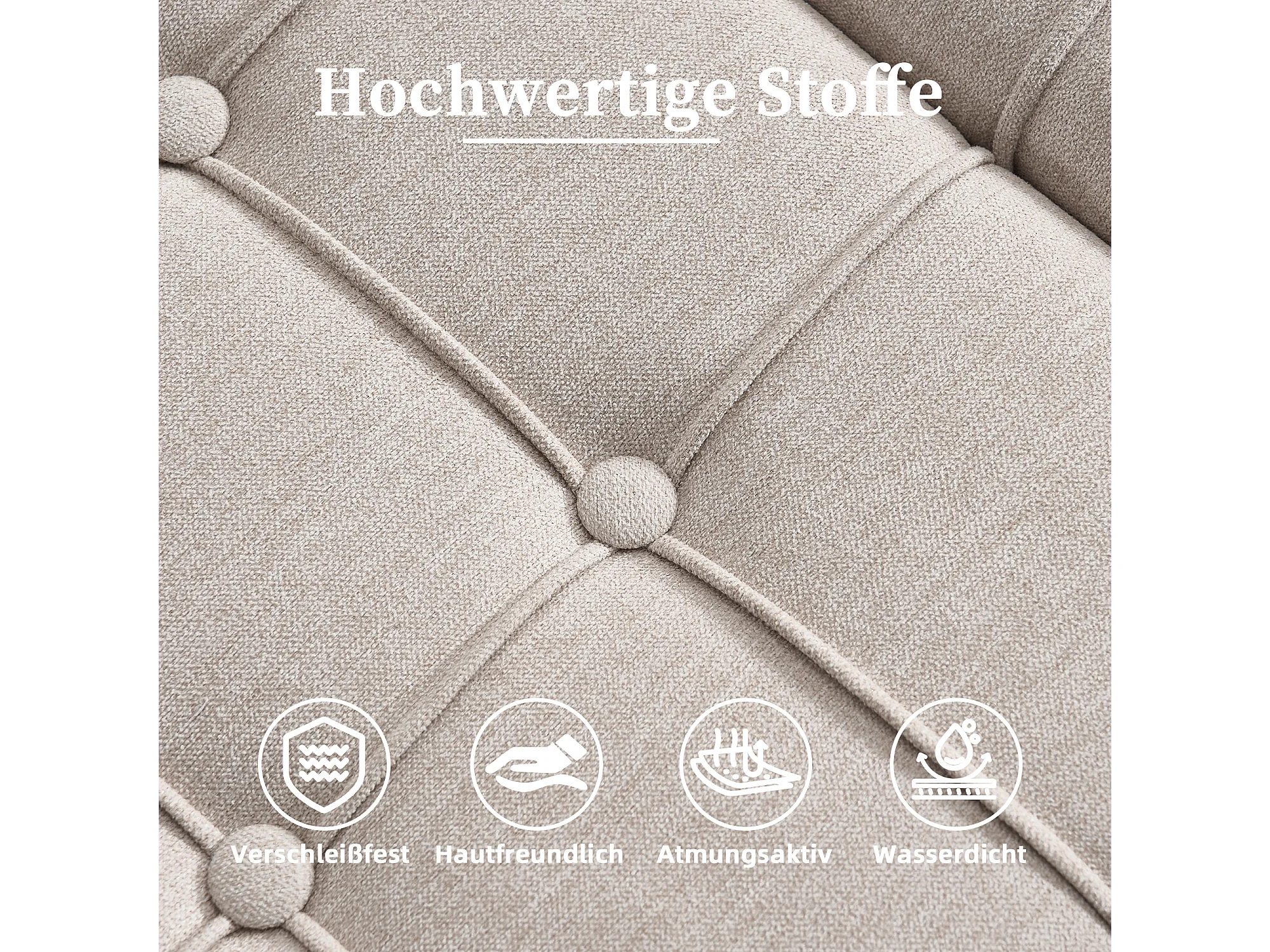 Banquette de rangement moderne, tissu Chenille et bois massif, antidérapante, beige (112x43x43 cm)