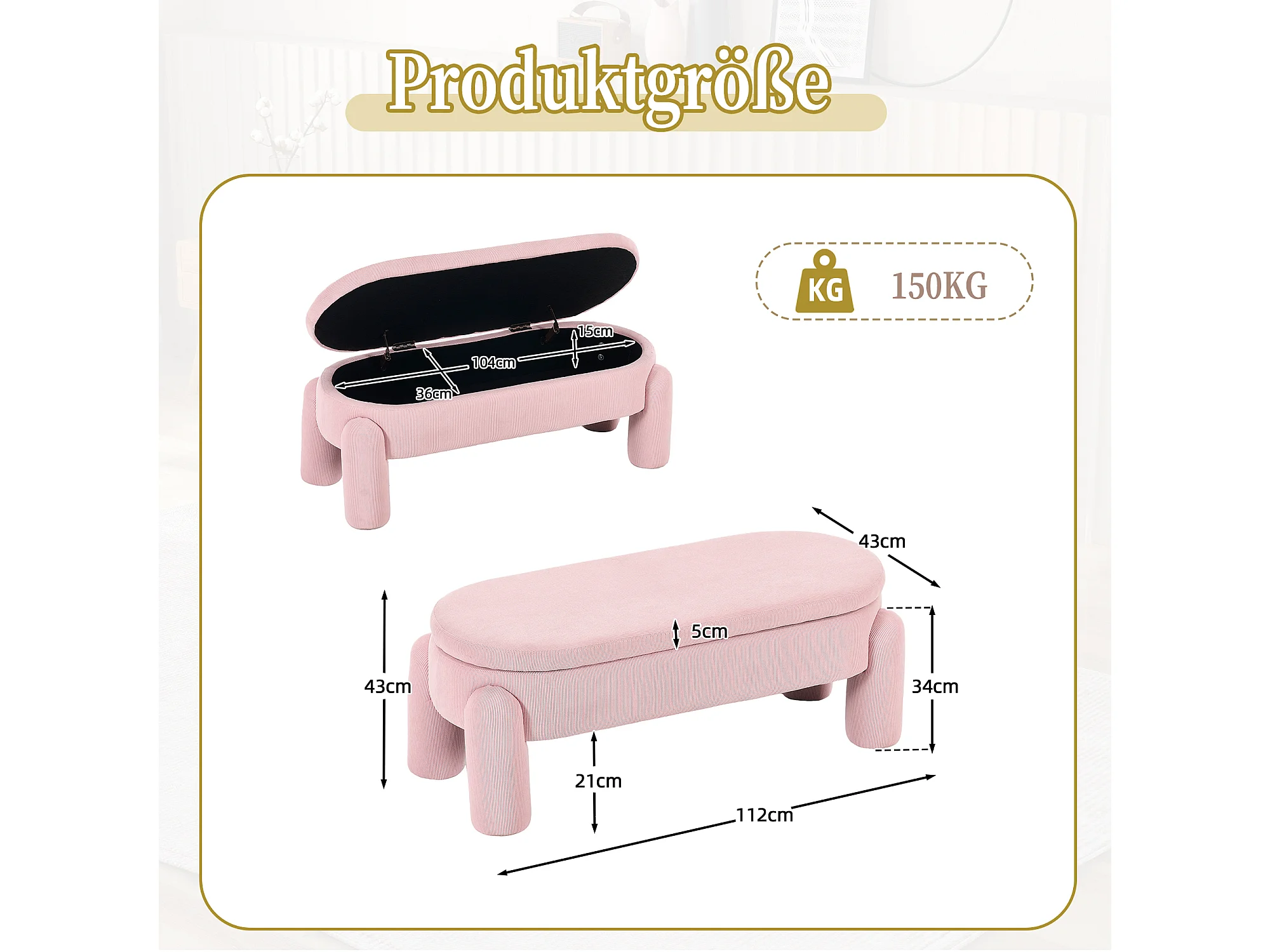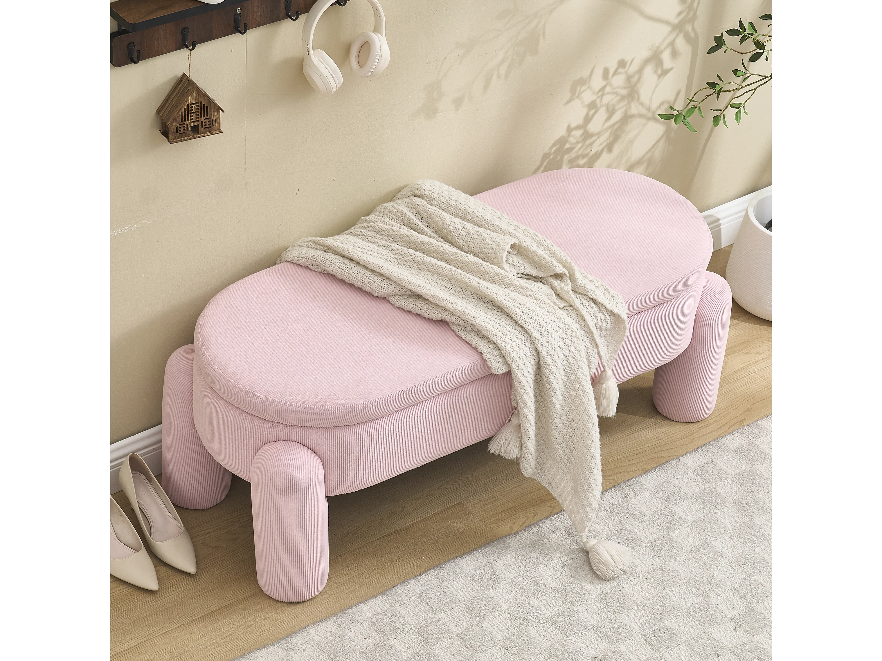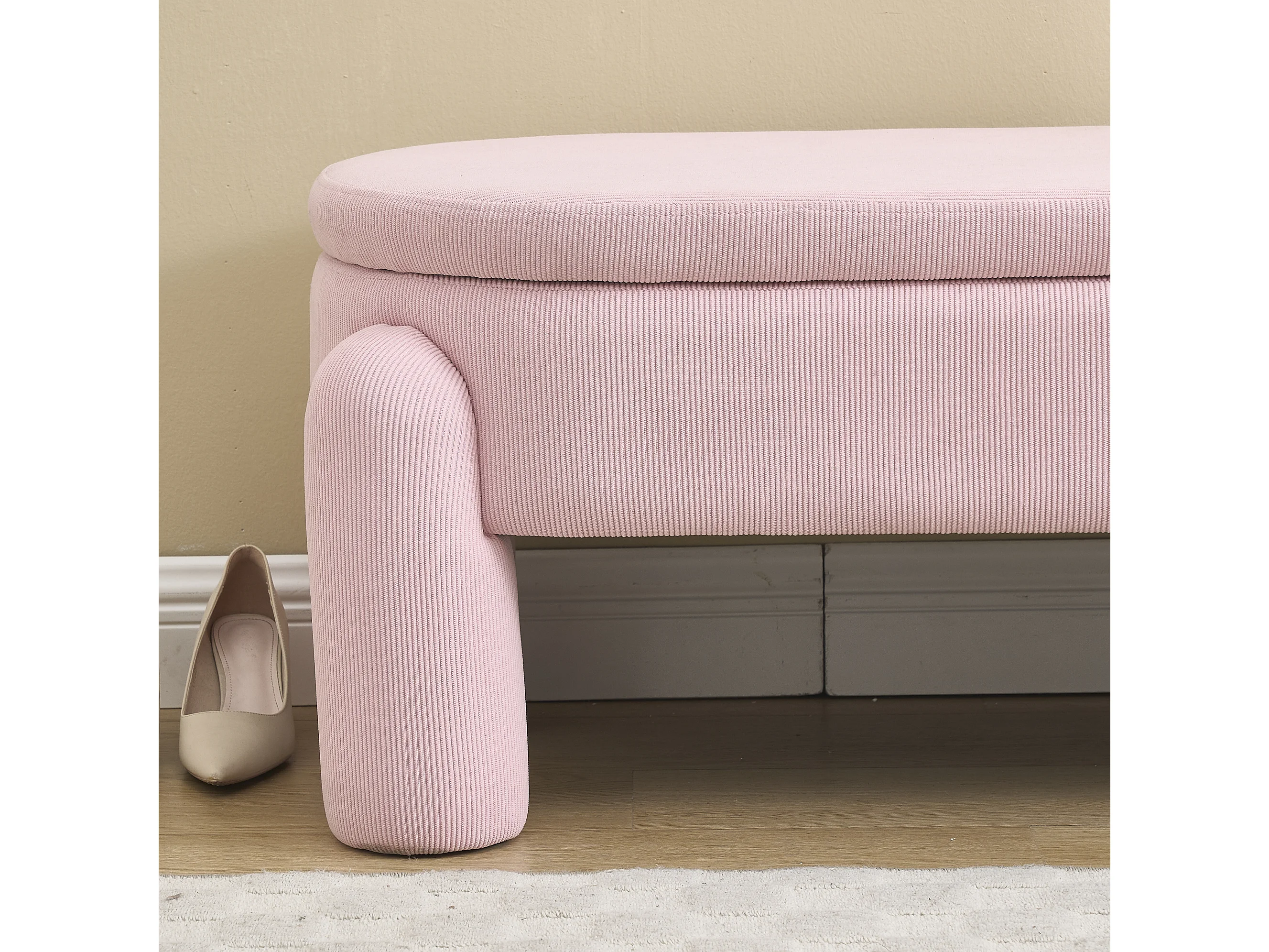 Banquette de rangement moderne avec tissu Chenille et cadre en bois massif, antidérapante, couleur rose (112x43x43 cm)