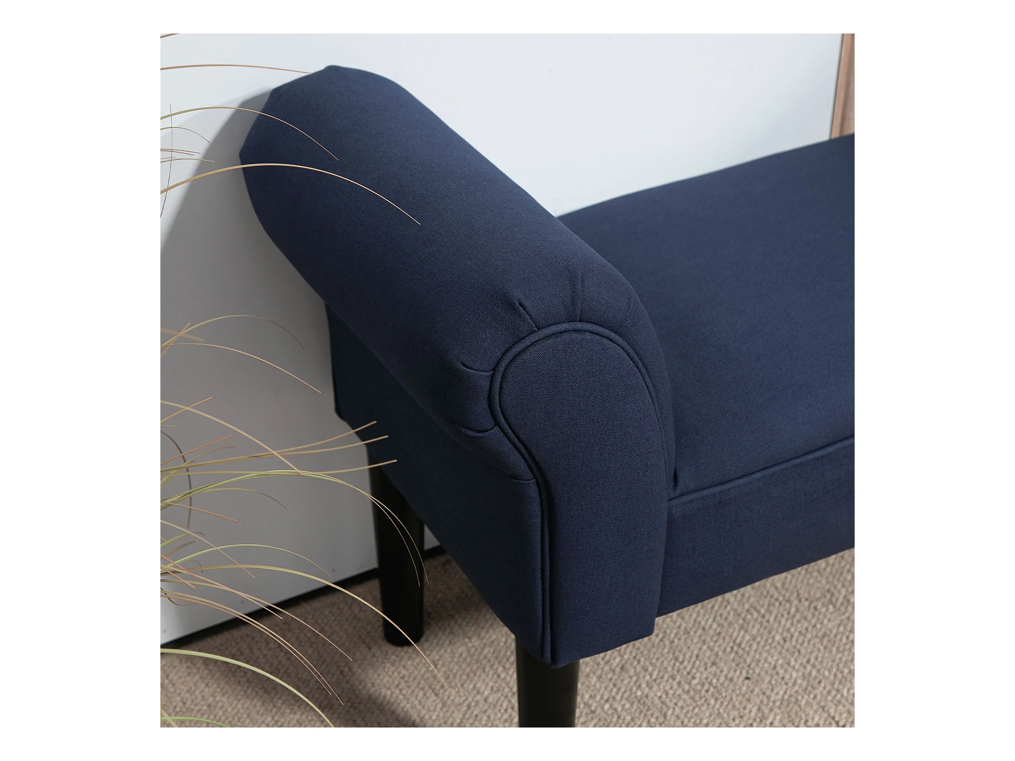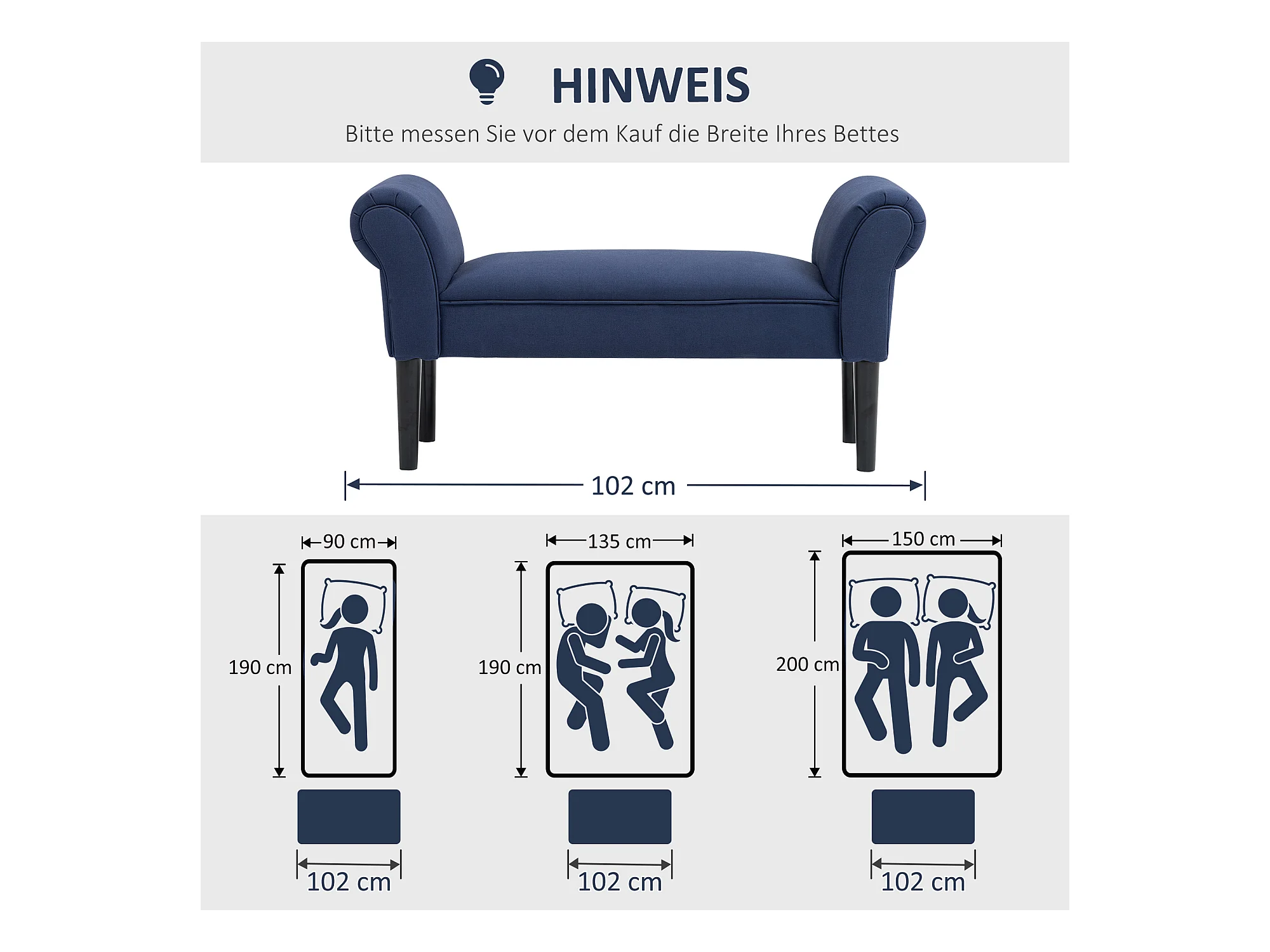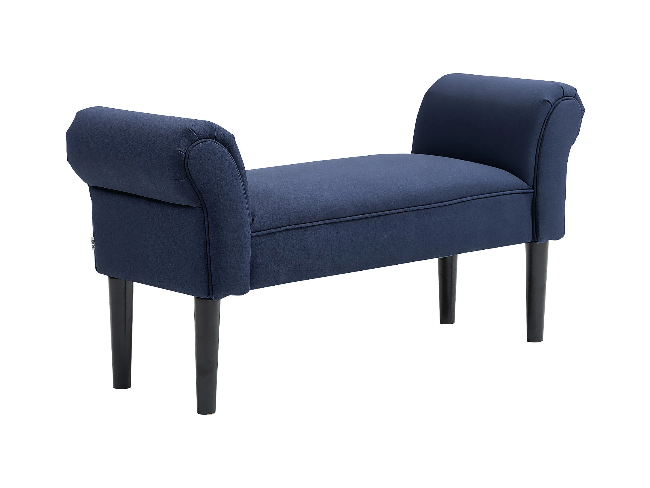 Banquette en tissu bleu, siège rembourré, avec pieds en bois, pour chambre ou hall (102x36x51 cm)