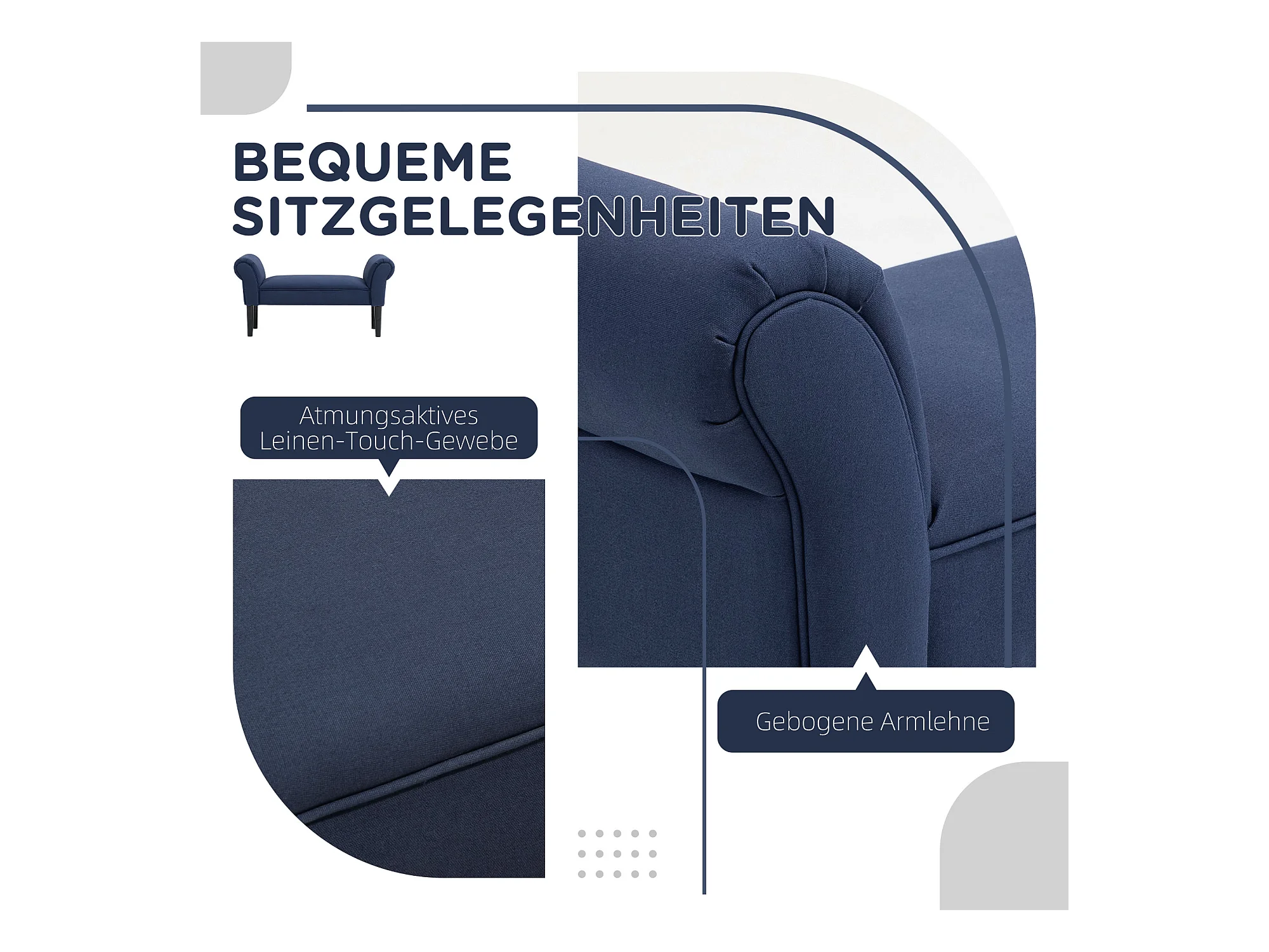 Banc rembourré luxueux, design vintage, polyester et caoutchouc, bleu (117x40x58 cm)